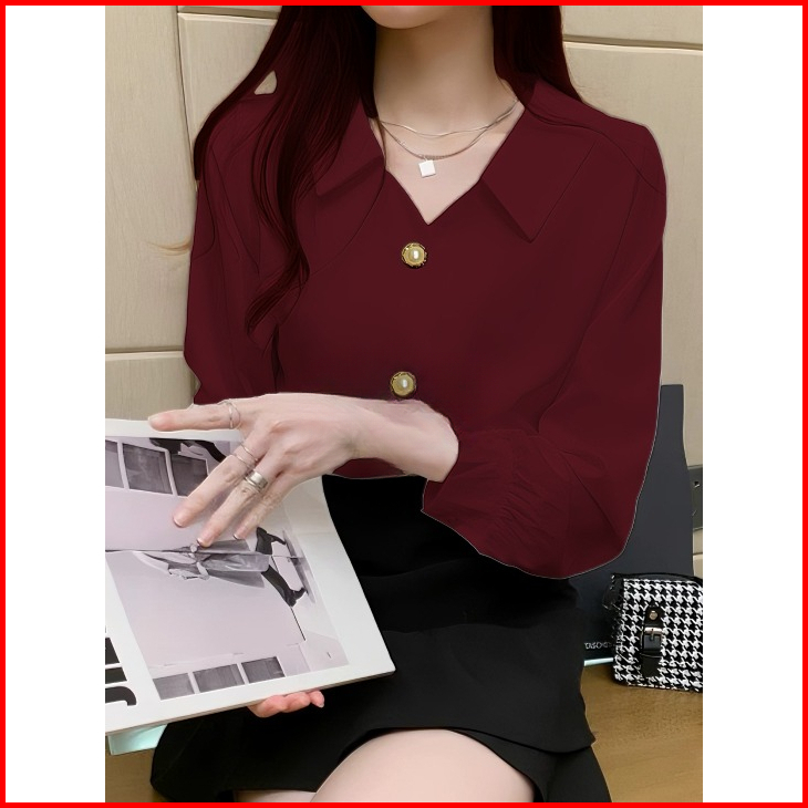 Calissa Fashion Kemeja Atasan Wanita Kantor Office Style Korea Lengan Panjang Model Zhuxin
