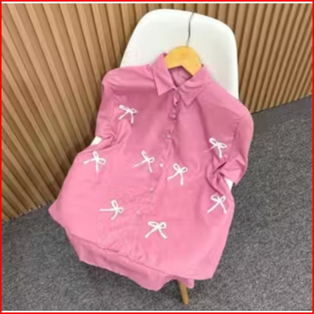 Kemeja Wanita Model Pita Polos Kekinian Atasan Terbaru Ld 110