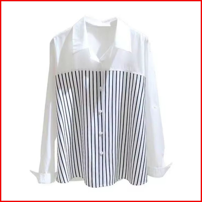 Anggun Kemeja Garis-garis Lengan Panjang Putih