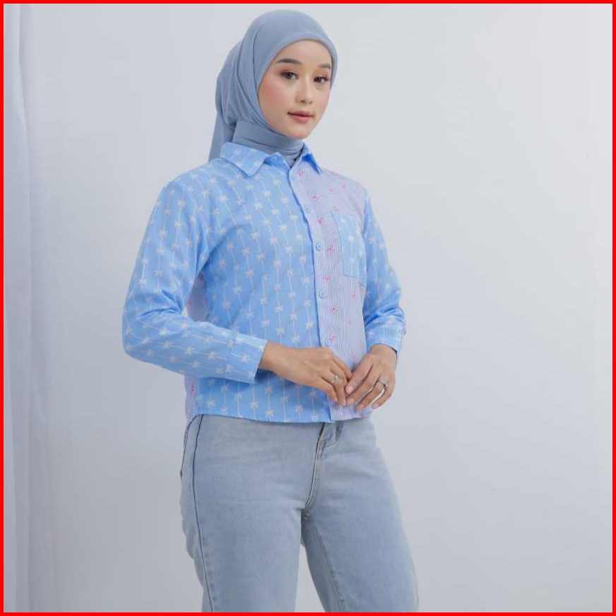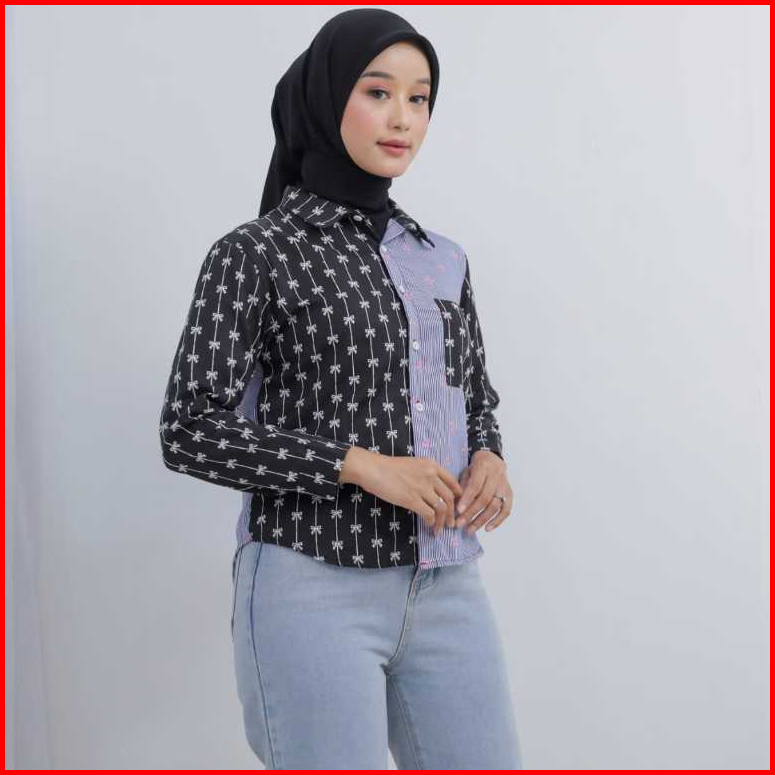 Kemeja Salur Wanita Kemeja Saku Baju Atasan Remaja Dewasa Outfit Kekinian Kemeja Terlaris