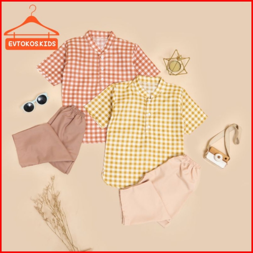 Setelan Koko Anak Set Kurta Anak Laki Laki Set Kemko Anak Kotak 1-12 Tahun