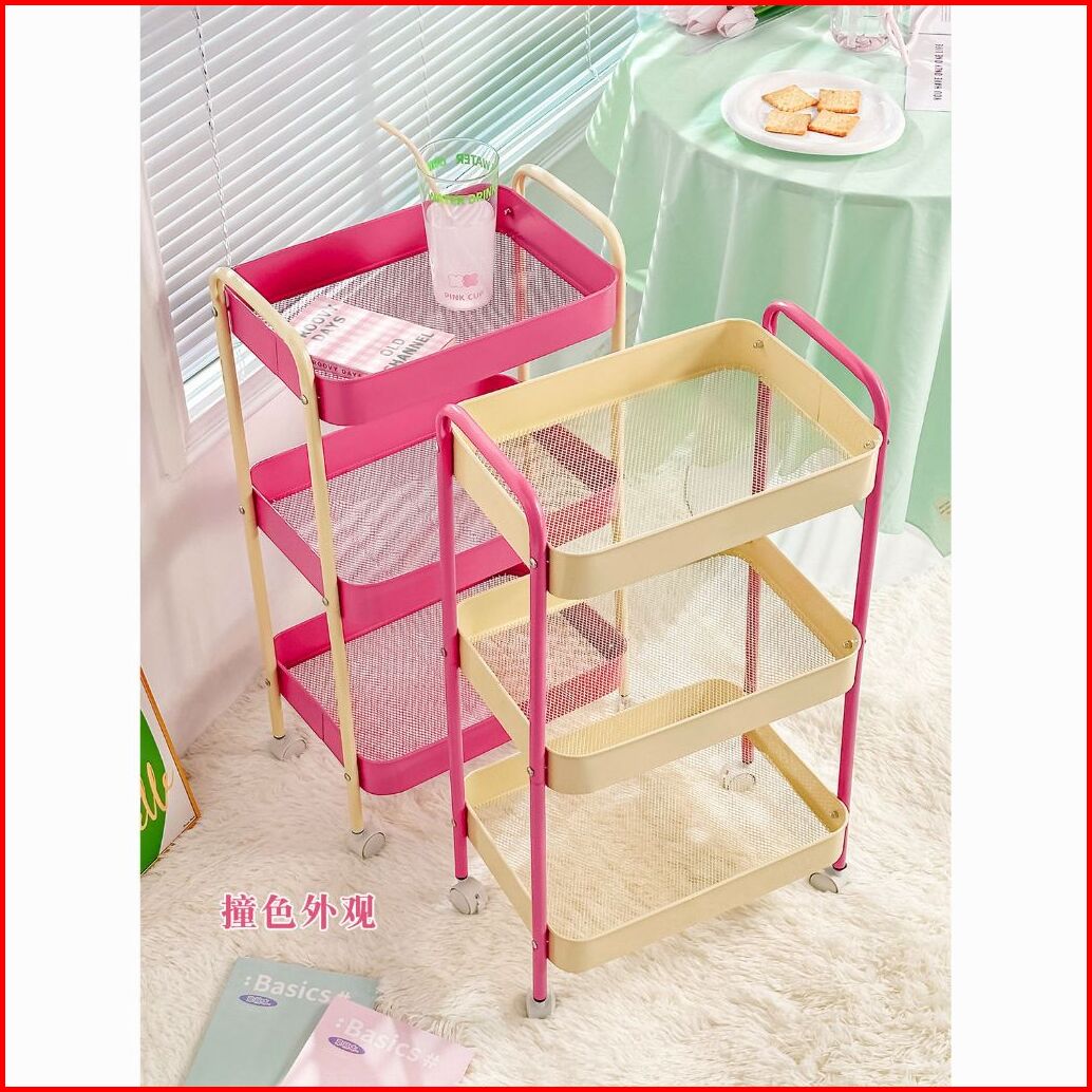 Trolly Rak Penyimpanan 3 Tingkat Warna Macaron Susun Multifungsi Steel Plastik Storage Rak Dengan Roda Untuk Perlengkapa