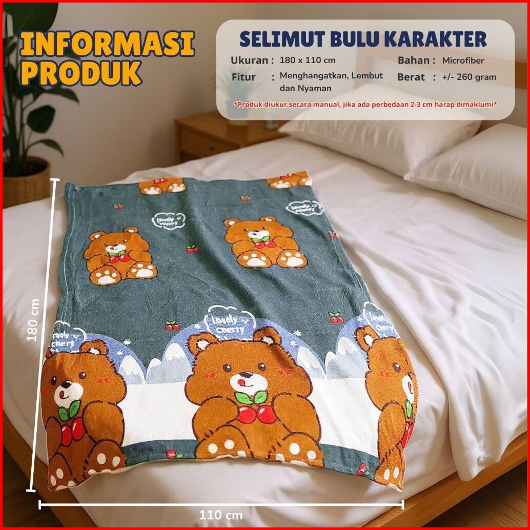 Selimut Bulu Halus Anak Motif Kartun Lucu 100x175 Cm Microfiber Lembut Premium Xs-1a