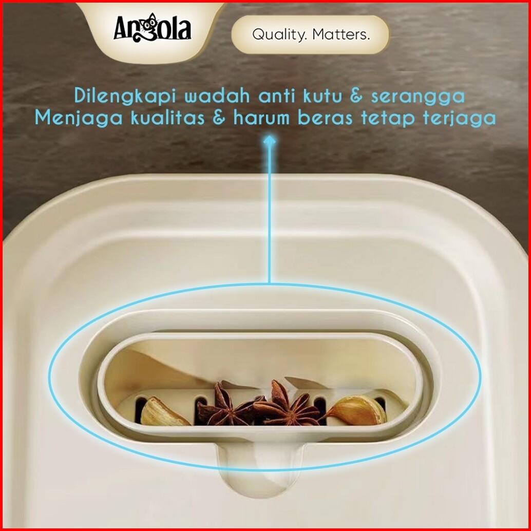 Angola Dispenser Beras Otomasi Anti Kutu 10kg E18 Rice Box Food Grade Tempat Penyimpanan Beras Gratis Mangkok Cuci Beras