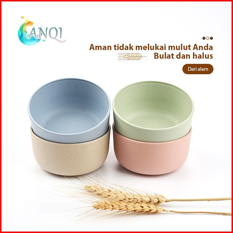 Anqi Shop Mangkuk Kecil Mangkok Wheat Straw Mangkuk Makan Bowl Set 4pcs Warna Warni Vs-9
