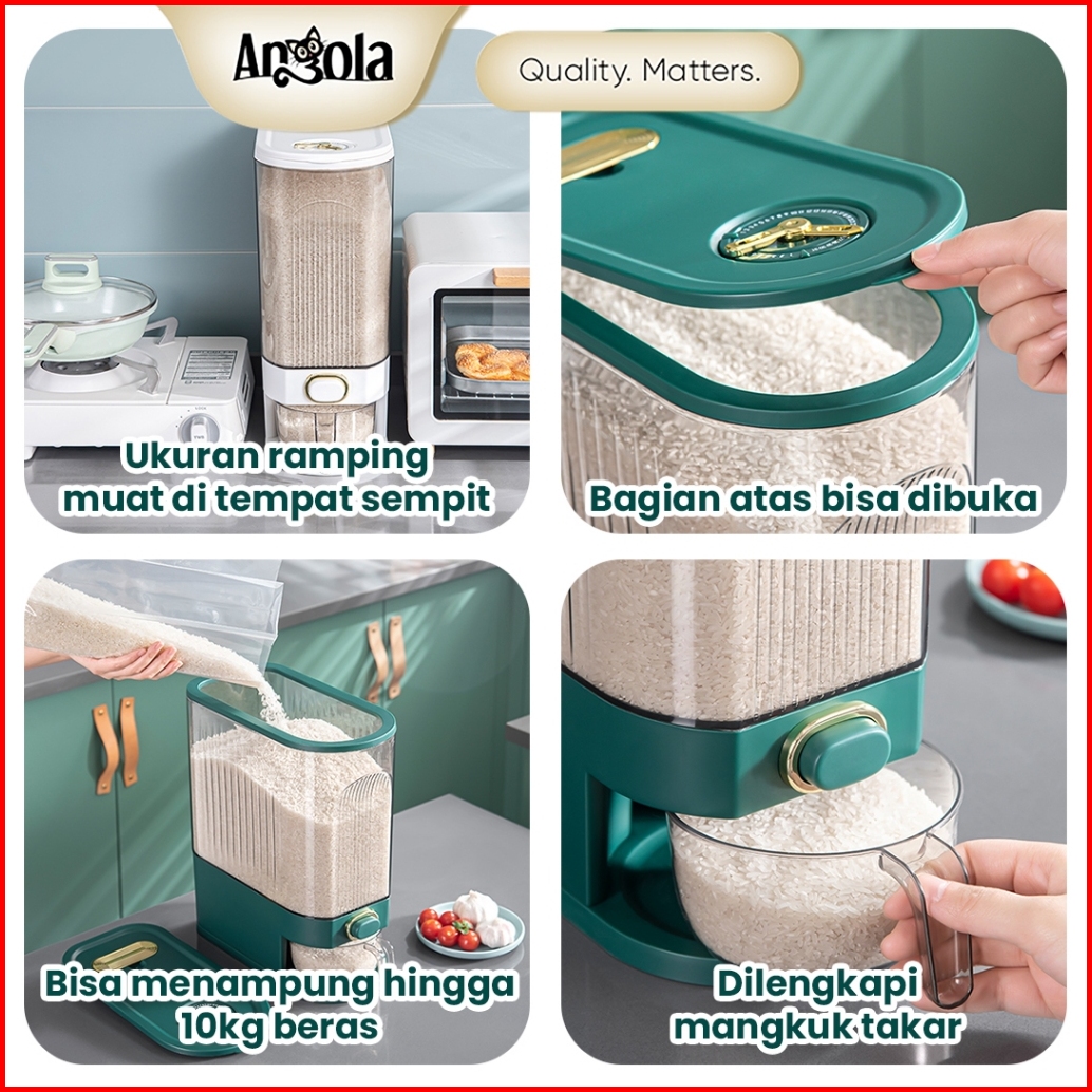 Angola Dispenser Beras Modern Otomatis E25-e26 Tempat Penyimpanan Beras Rice Box Food Grade Gratis Mangkok Cuci Beras
