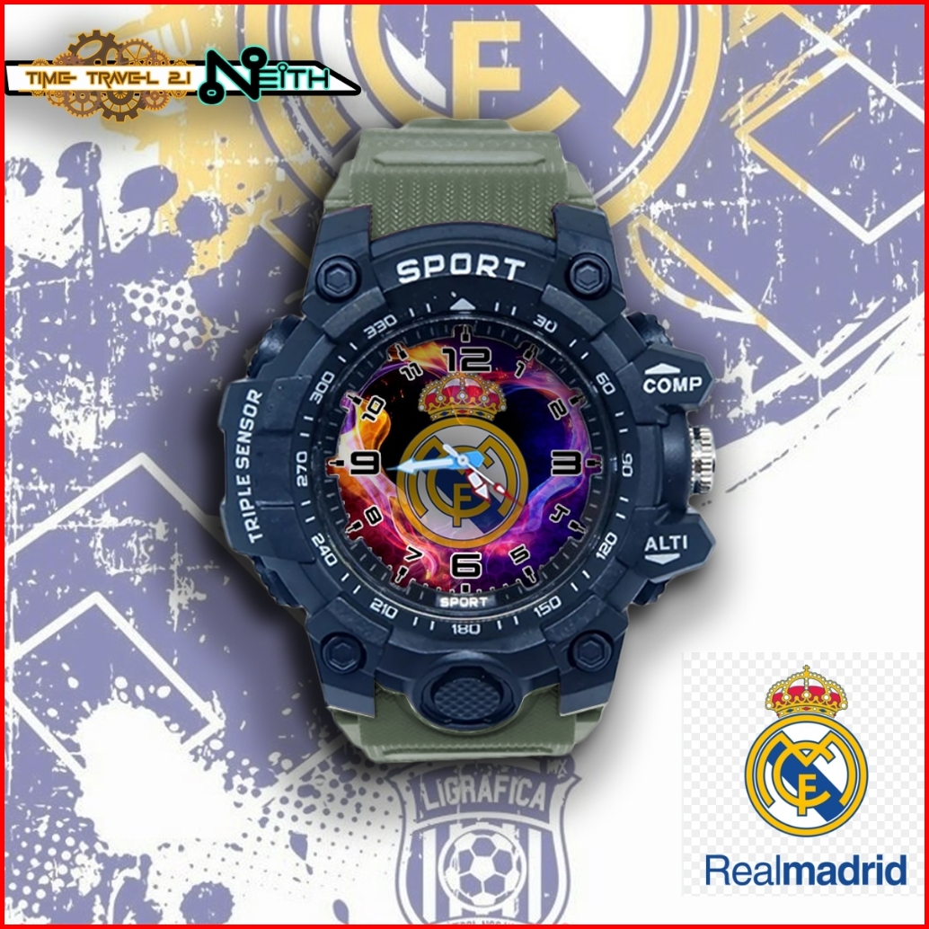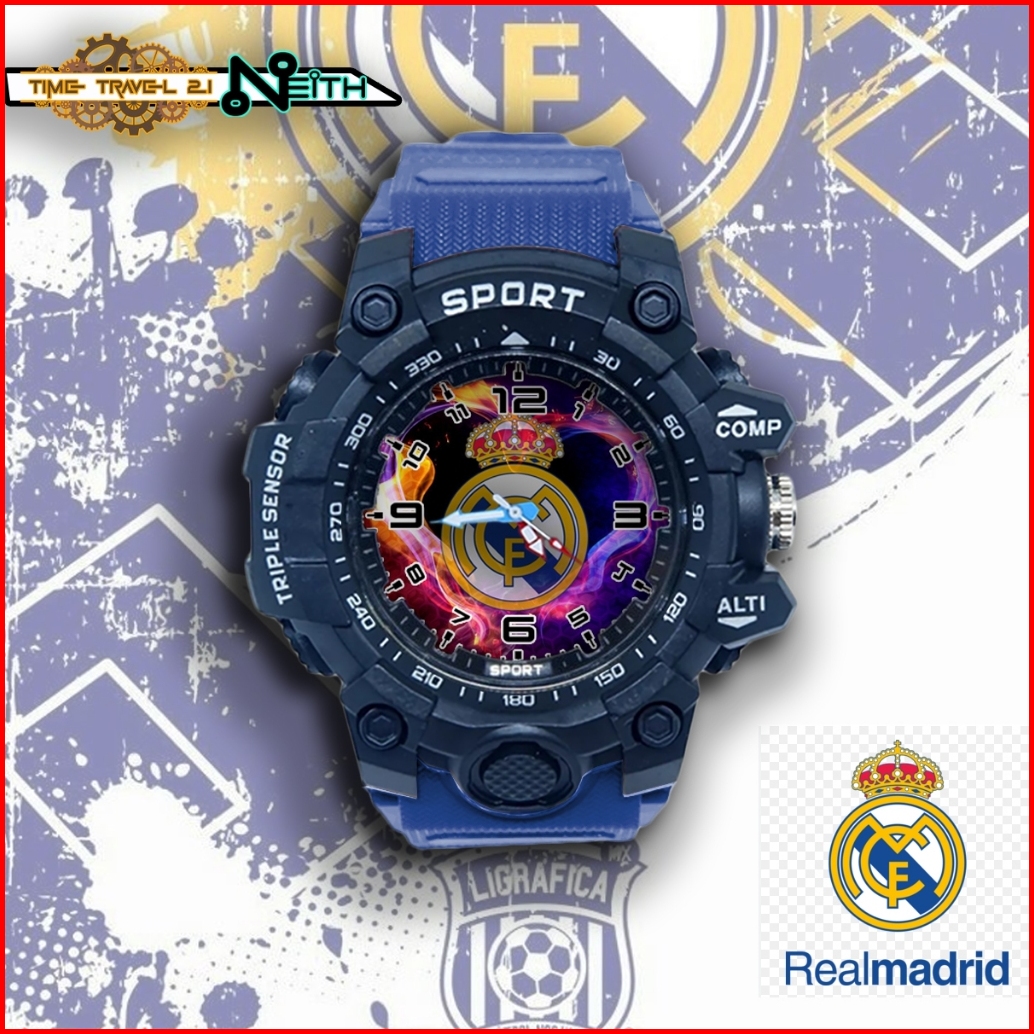 Jam Tangan Anak Sport Real Madrid C.f.. Strap Ruber Sporty Anti Air Jam Tangan Sport 11x5sp02