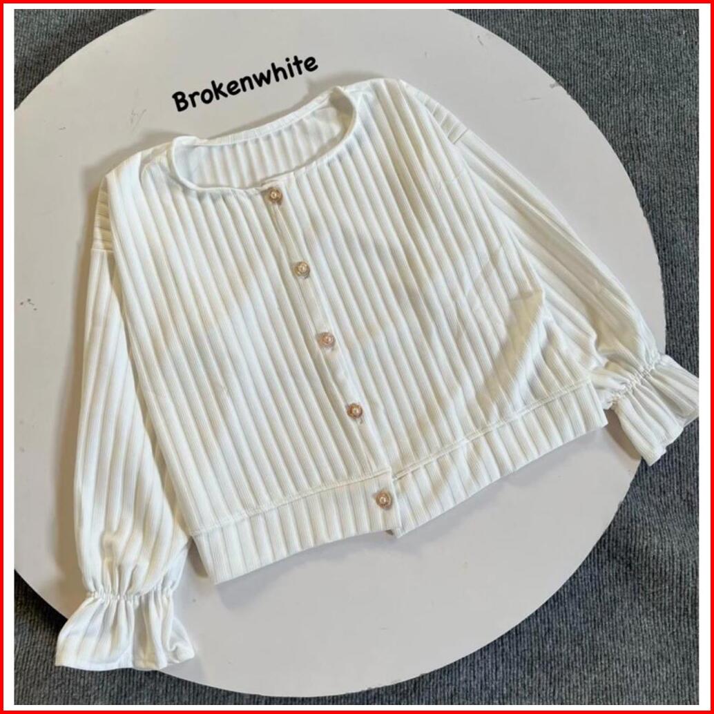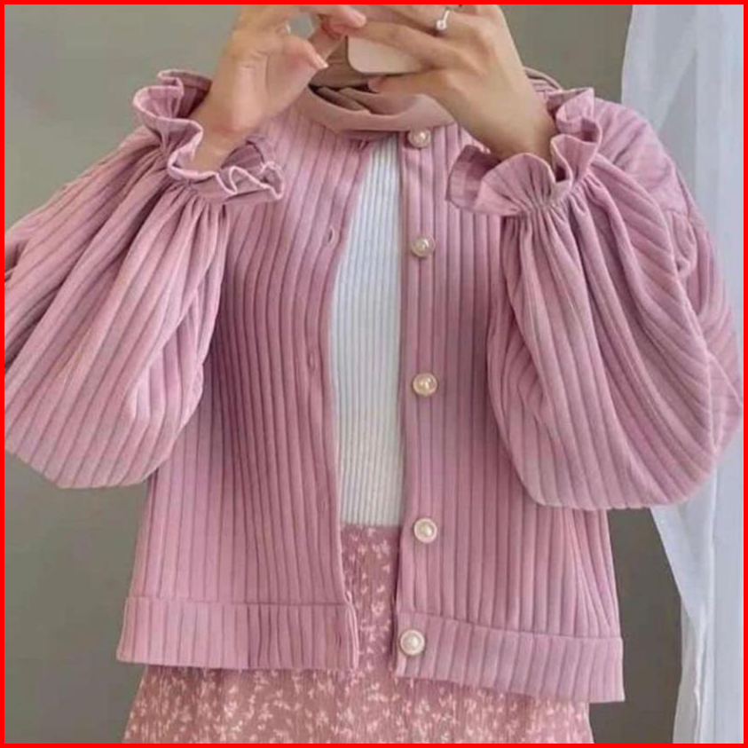Cardigan Knit Hornet Outer Korean Style Crop Top Lengan Balon Kancing Hidup