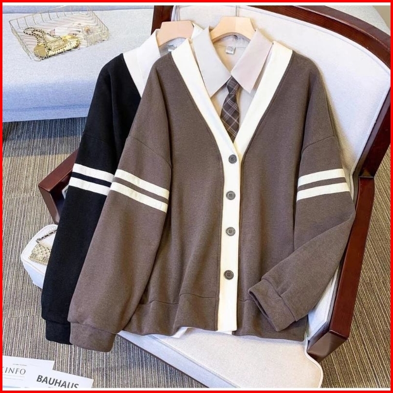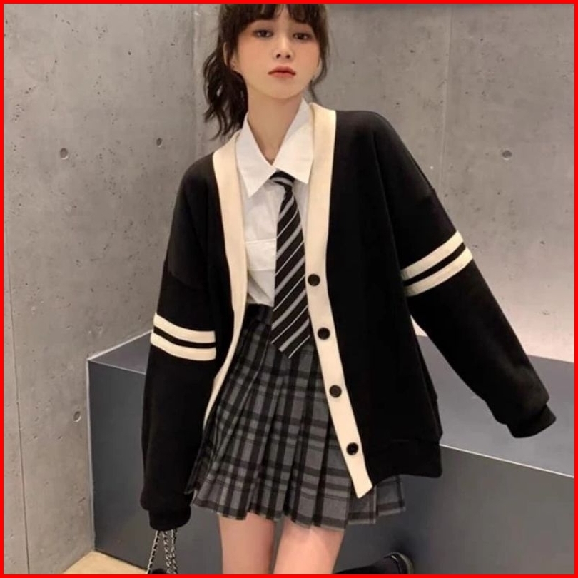 Aseo. . Sweater Stripy Outher Cardigan Wanita Oversize Sweater Cardigan Wanita Girl Korean Style Kekinian
