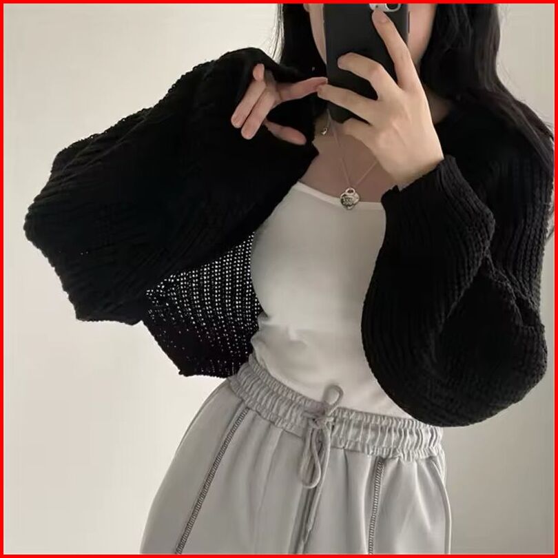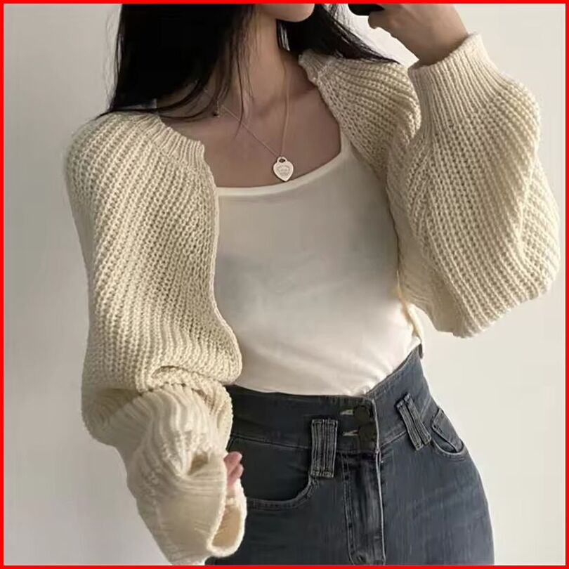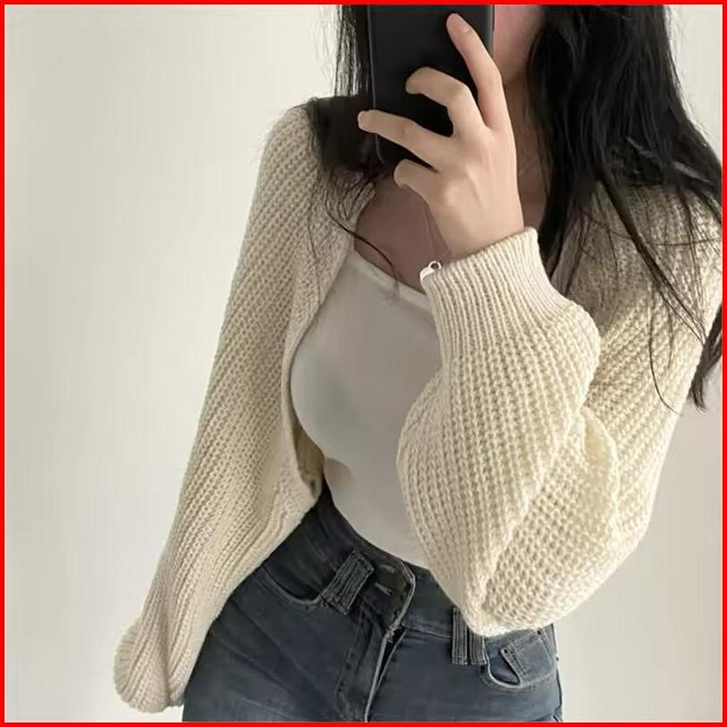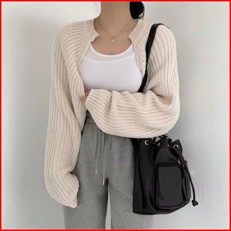 Basic Id Fashion Cardigan Crop Top Long Sleeve Korea Style Cardigan Rajut Tebal Model Crop