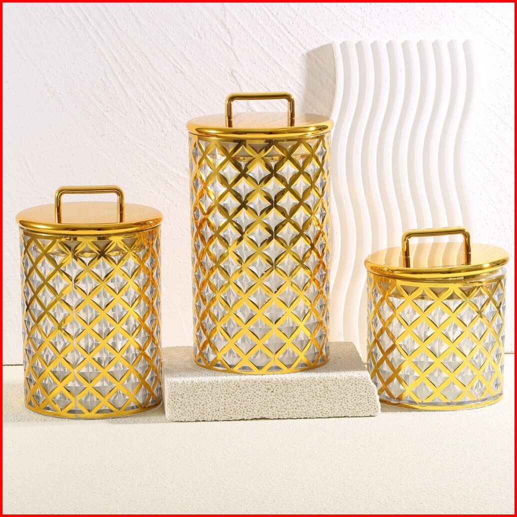 3pcs Toples Kedap Udara Toples Kue Kering Tangki Segel Penyimpanan Toples Tutup Kayu Glass Tea Jar Tangki Penyimpanan Ca