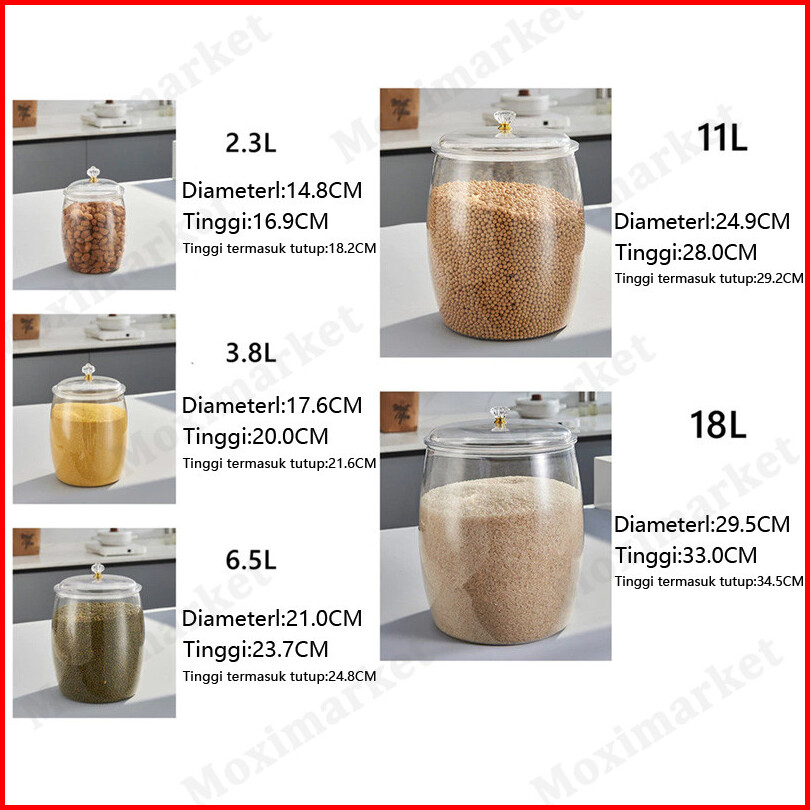 Toples Akrilik Jumbo Kedap Udara Wadah Plastik Kedap Udara Kapasitas Besar Toples Transparan Anti Bocor Tempat Penyimpan