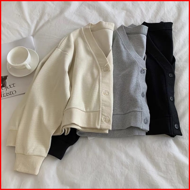 Kardigan Crop Wanita Lunaya - K-pop Sweater Lalisa Remaja Kekinian Terbaru - Allsize - Baju Wanita