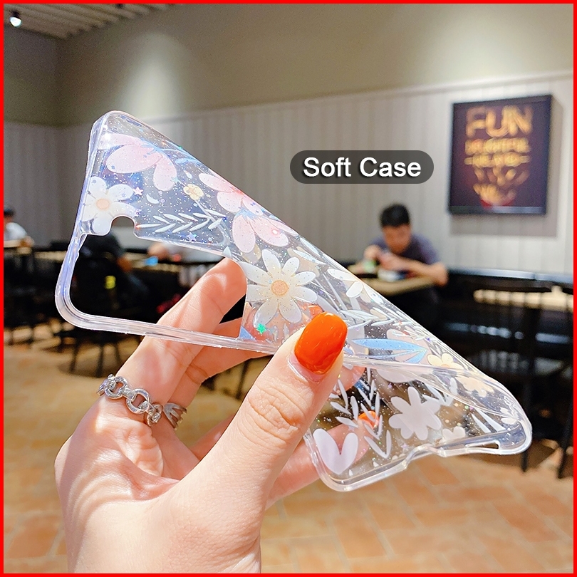 Crashstar Glitter Flower Epoxy Transparent Soft Phone Case For Samsung Galaxy S25 S24 Fe S23 S22 S21 Note 20 Ultra A56 A