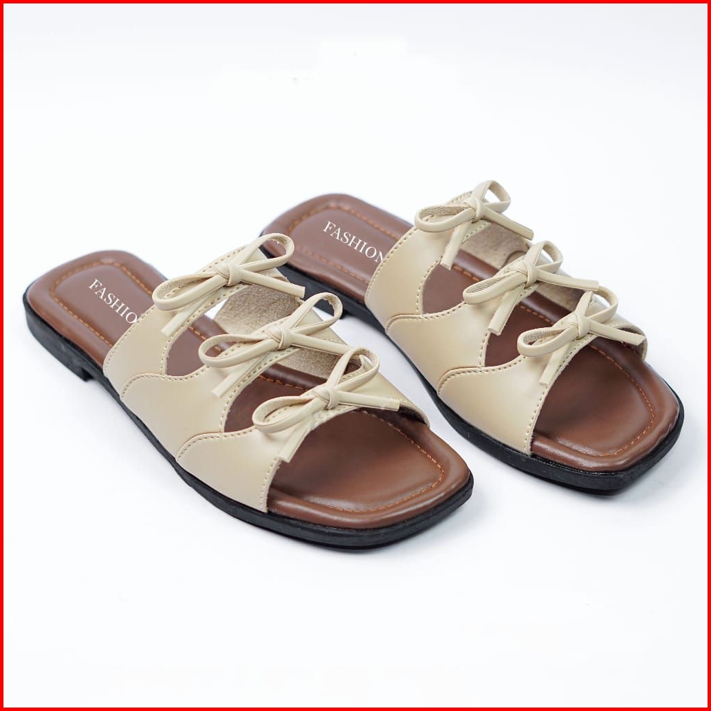 Sandal Flat Wanita Slop Tali Pita Viral 2025 Sandal Teplek Model Kekinian Sandal Flat Cewek Pijakan Super Empuk