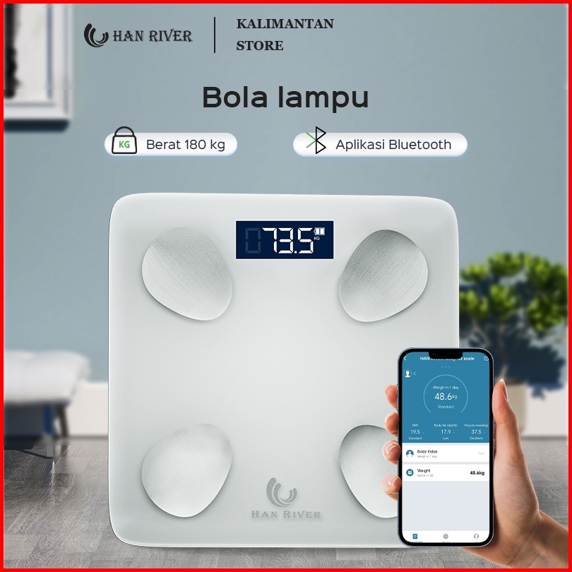 Pengiriman Dari Banjarmasin Han River Timbangan Badan Digital 180kg Bluetooth App Smart Scale
