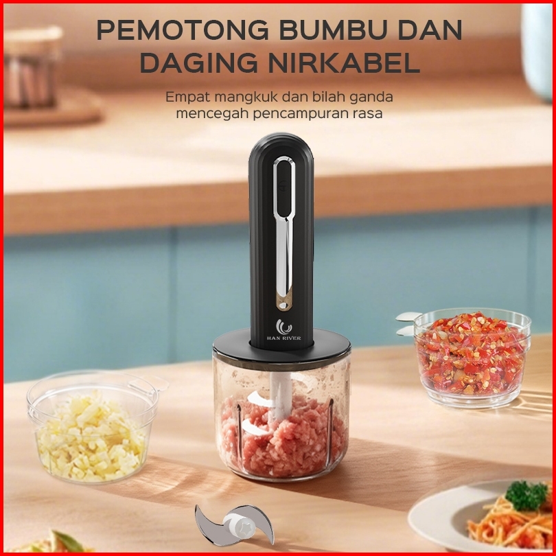 Han River Blender 4-in-1 Multifungsi Chopper Tanpa Kabel Coper Daging Dan Bumbu