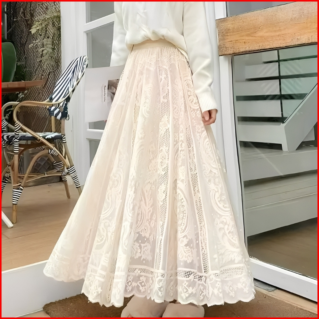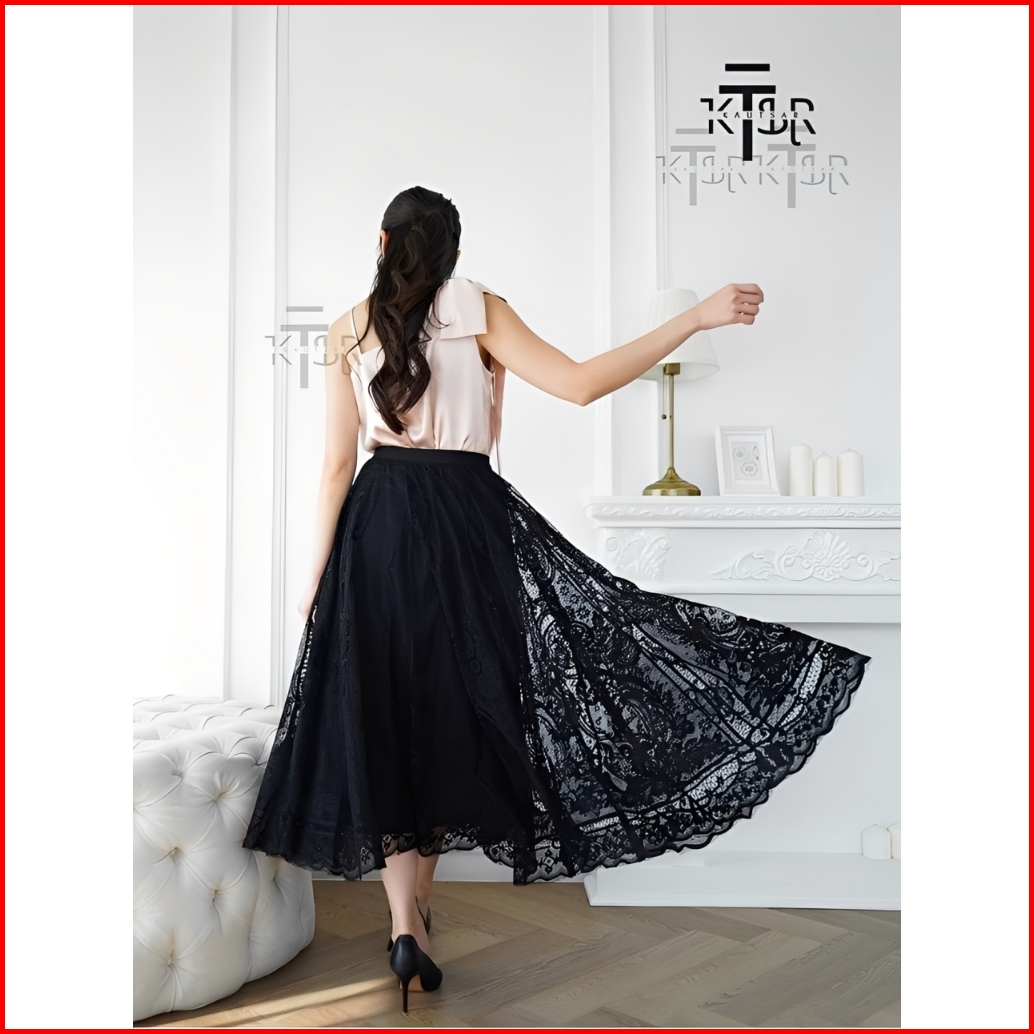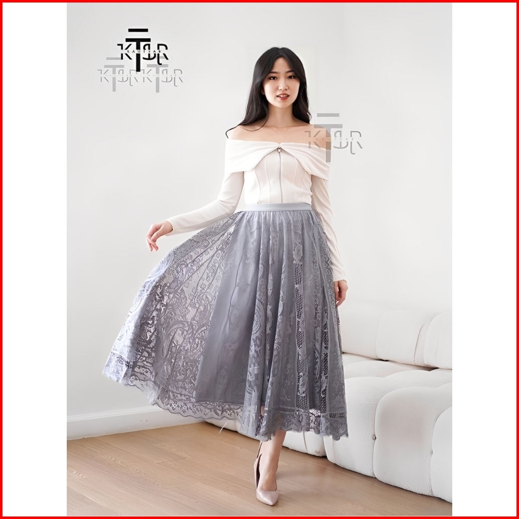 Rok Brokat Premium Lace Skirt Dewasa Rok Tutu Import Terbaru Korean Style Panjang Elegan