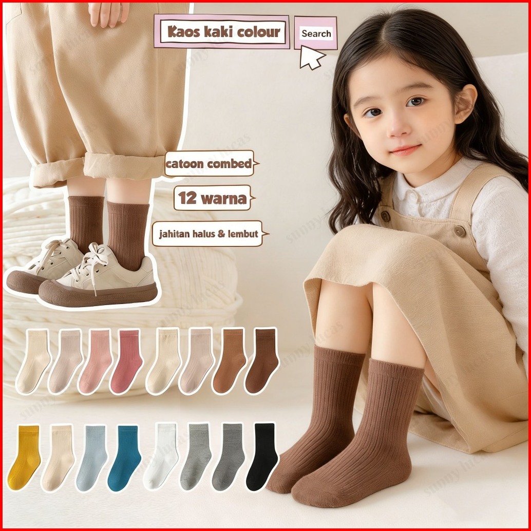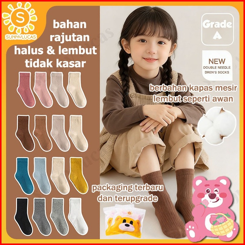 Sunny.lucas 1-12tahun Katun Murni Socks Good Quality Gaya Kaos Kaki Anak Perempuan Kaos Kaki Anak Plain Socks Kaki Anak