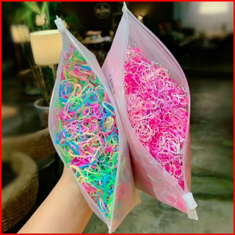 Promo 12.12 Happyoliver Ikat Rambut Warna-warni Mix Karet Rambut Pouch Jepang 500pcs Free Pouch Karet Rambut Jepang Isi