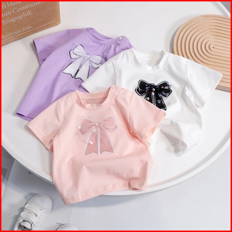Happyoliver Dress Ribbon Love Mn 1-8 Tahun Croptop T-shirt Pita Lengan Pendek Kaos Anak Perempuan Lucu