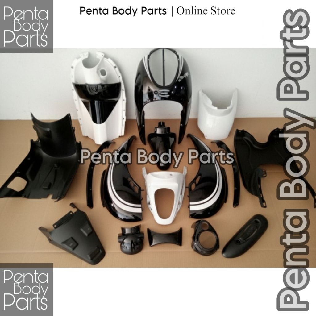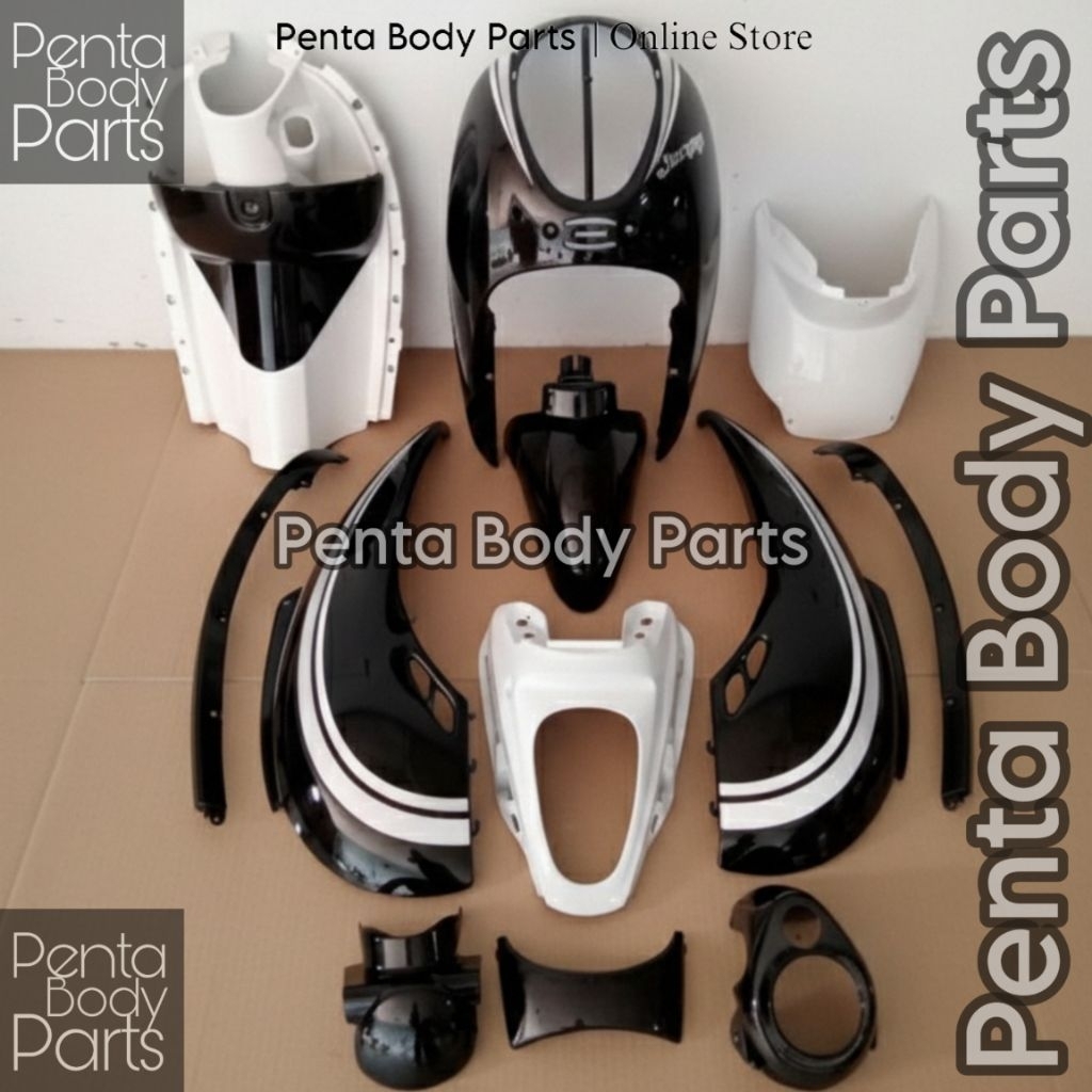 Full Set Cover Body Hitam Putih Scoopy Karburator (KYT) - Ful Set Bodi Halus dan Kasar Honda Scoopy Karbu 2010-2013