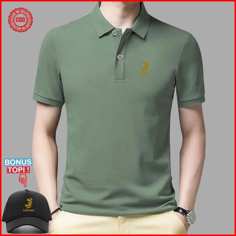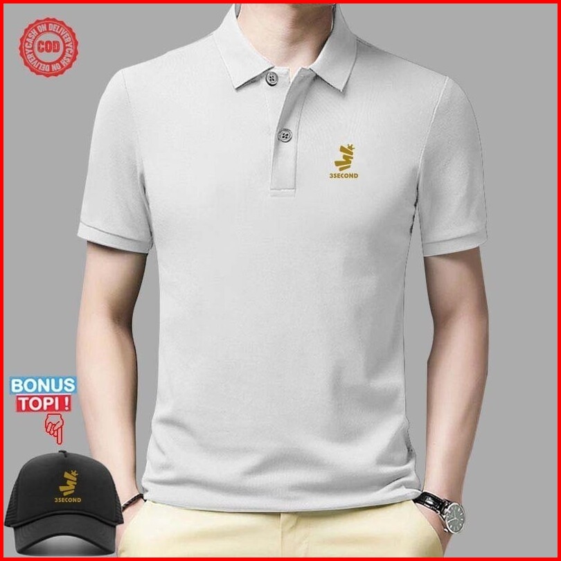 Gratis Topi Baju Polo Kerah Distro Thresecond Text Lengan Pendek Premium Quality