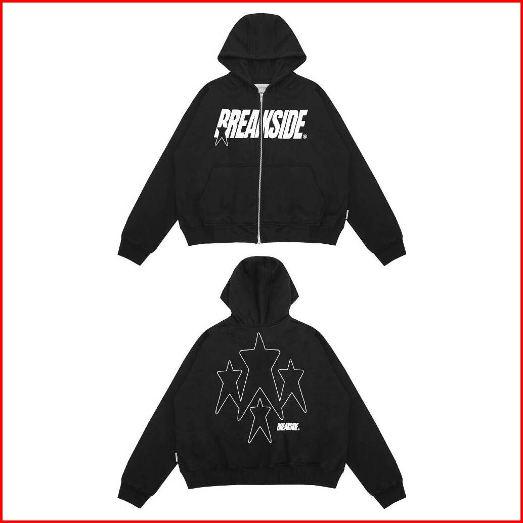 Free Box Breakside Zipper Hoodie Oversized Boxy Starboy - Black