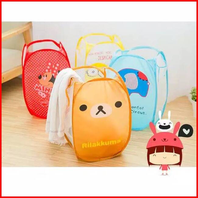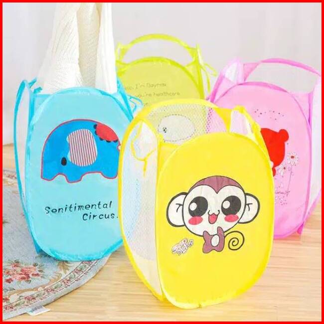 Keranjang Baju Kotor Lipat Kawat Baja Nilon