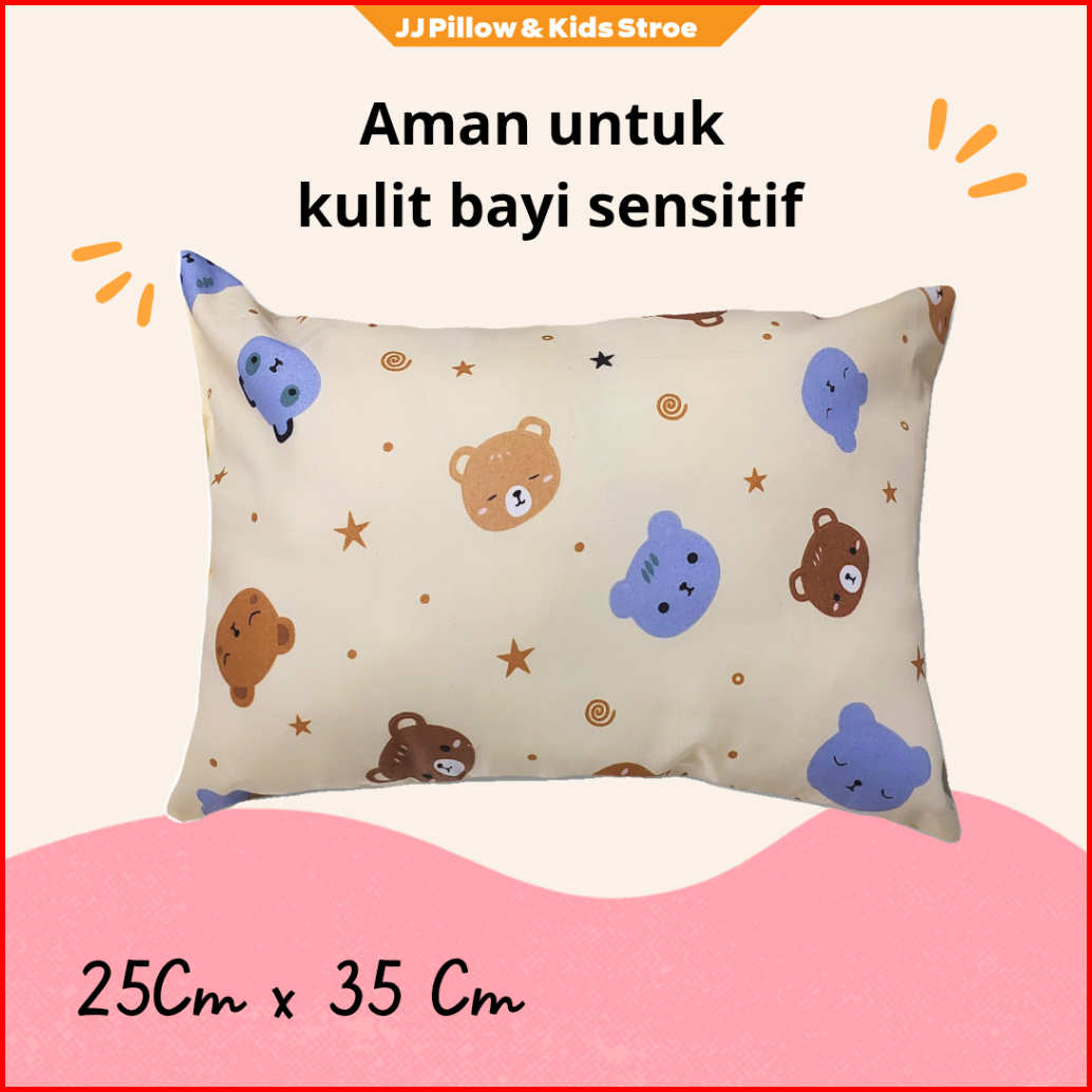 Sarung Bantal Bayi Motif Bear 25x35 Katun Lembut Adem Untuk Tidur Bayi Baru Lahir 03 Bulan
