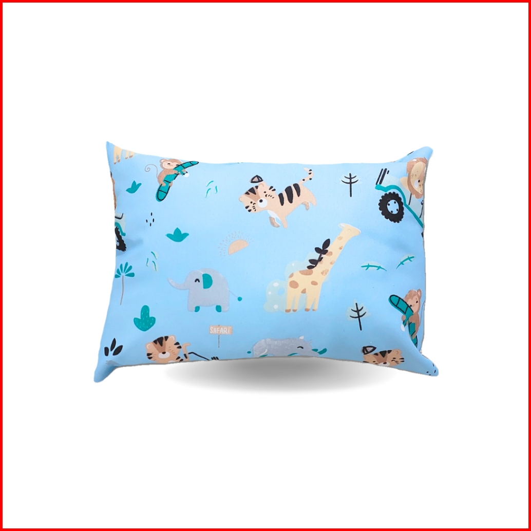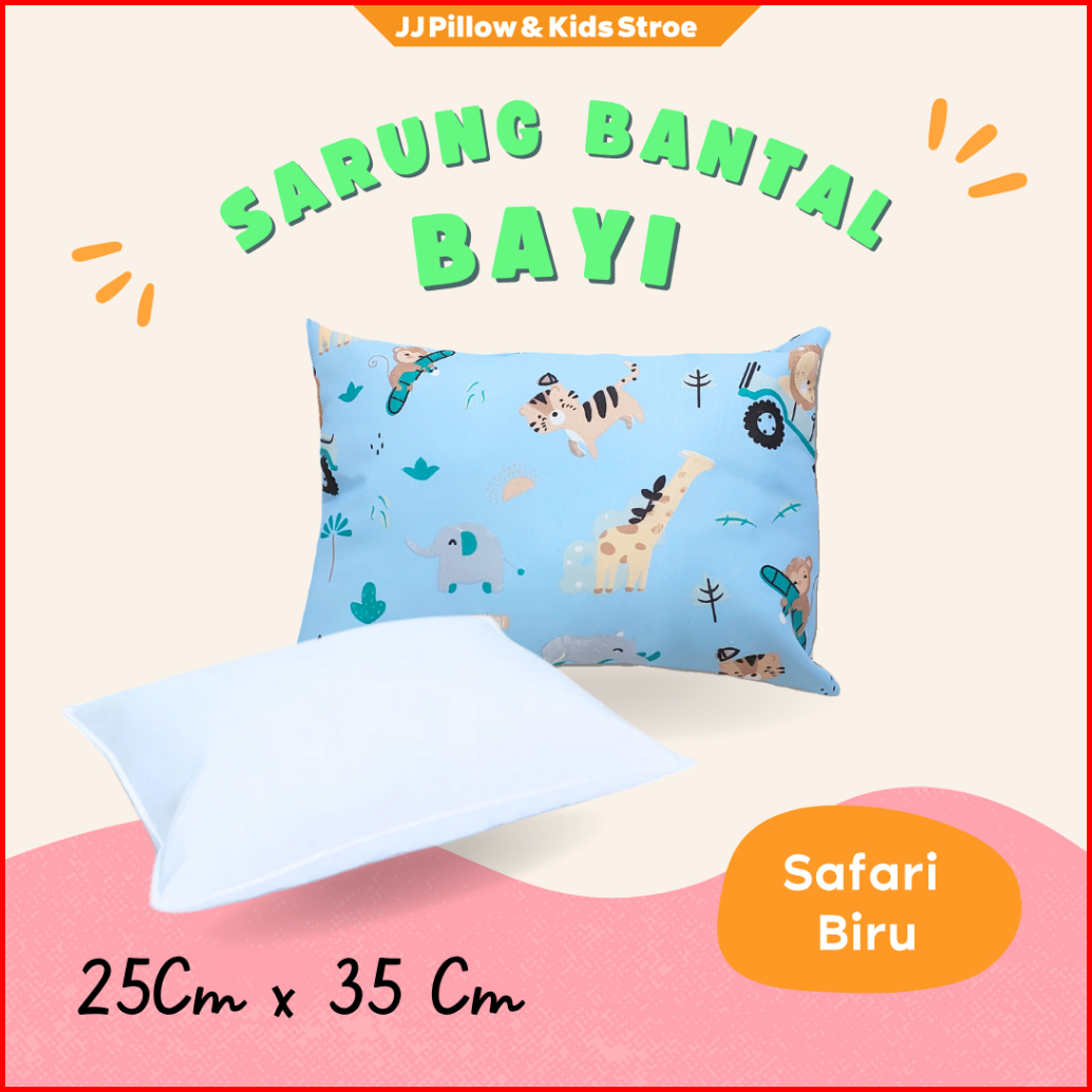 Sarung Bantal Bayi Safari Biru 25x35 - Katun Lembut Untuk Bantal Tidur Bayi 0-3 Bulan
