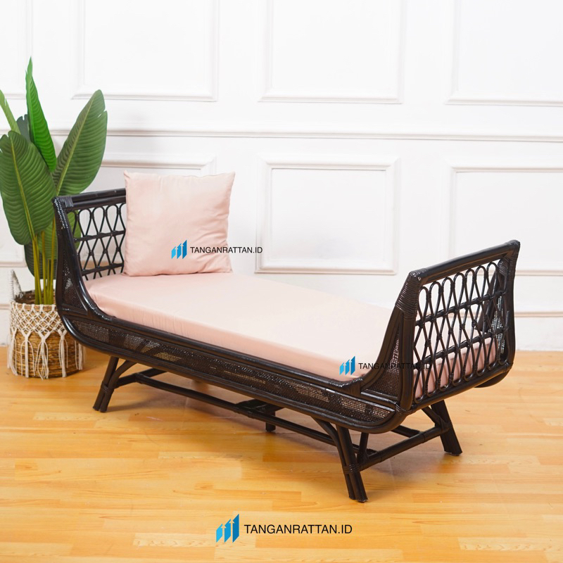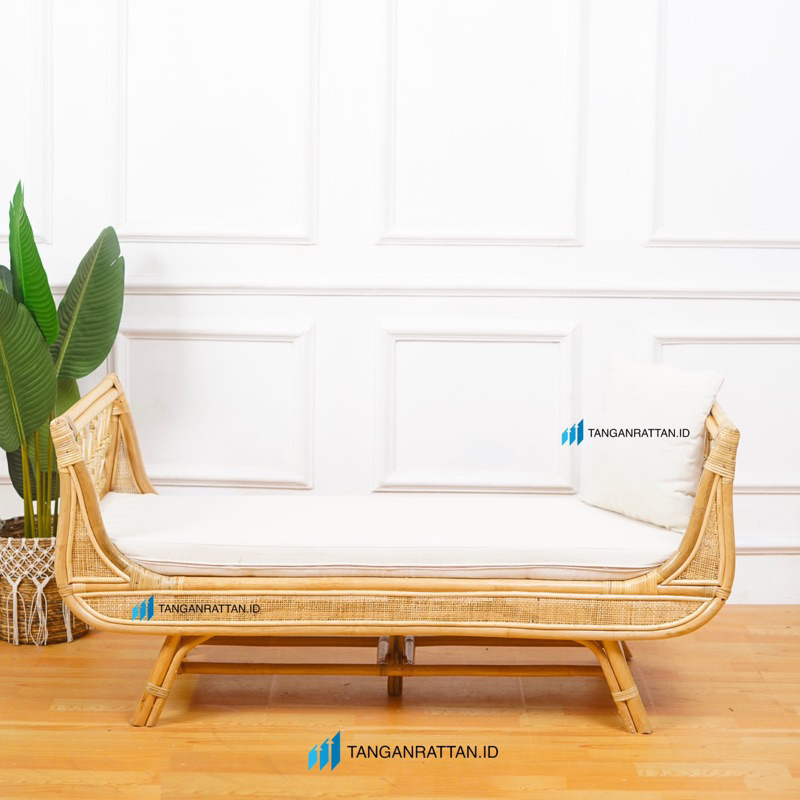KURSI SOFA BANCH ROTAN PANJANG 3 SEATER DENGAN BANTAL / SOFA SANTAI BENCH ROTAN FINISHING MELAMIN EKSPOR