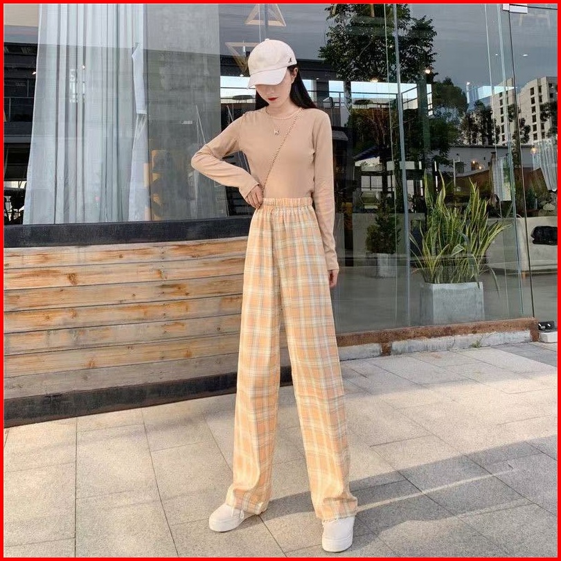 Rsb Cpg280 Celana Panjang Wanita Motif Kotak - Kotak Casual Tartan Plaid Long Pants Korean Fashion