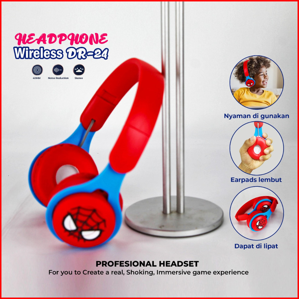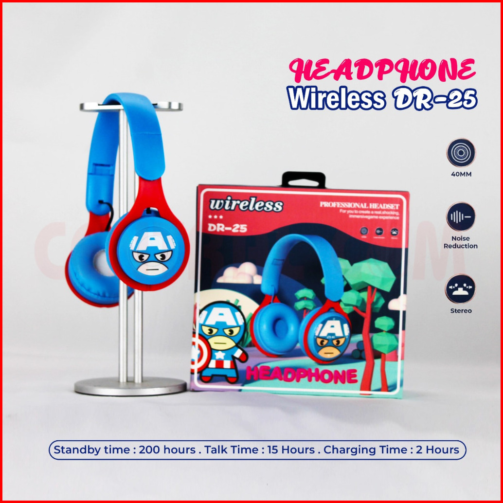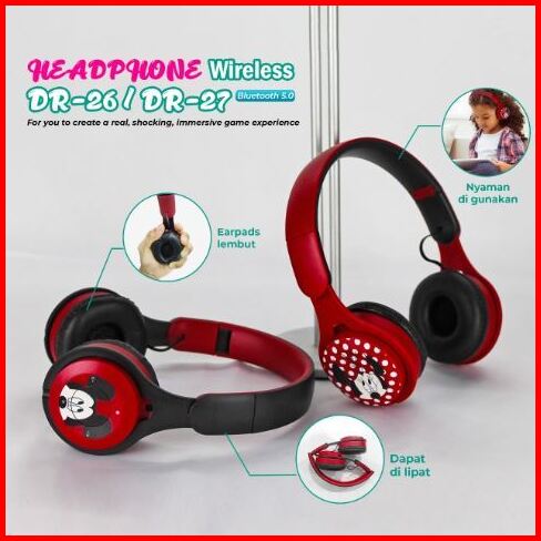 Headphone Bando Bluetooth Wireless Karakter Dr Series Type Dr 24 Spiderman Dr 25 Capten Dr 26 Mickey Dr 27minnie