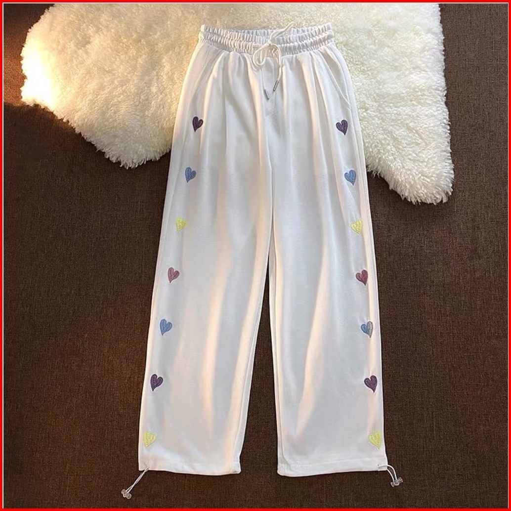 Celana Wanita - Collor Love Bordir Kulot Celana Panjang Wanita Bahan Fleece