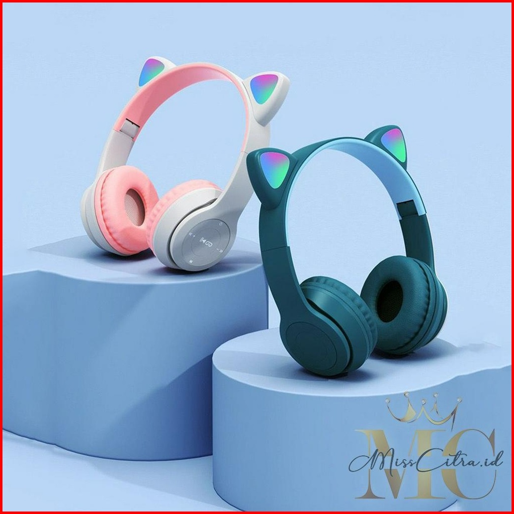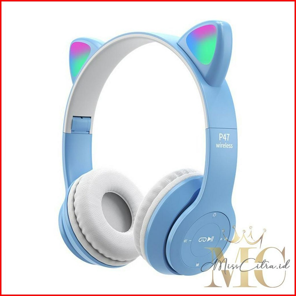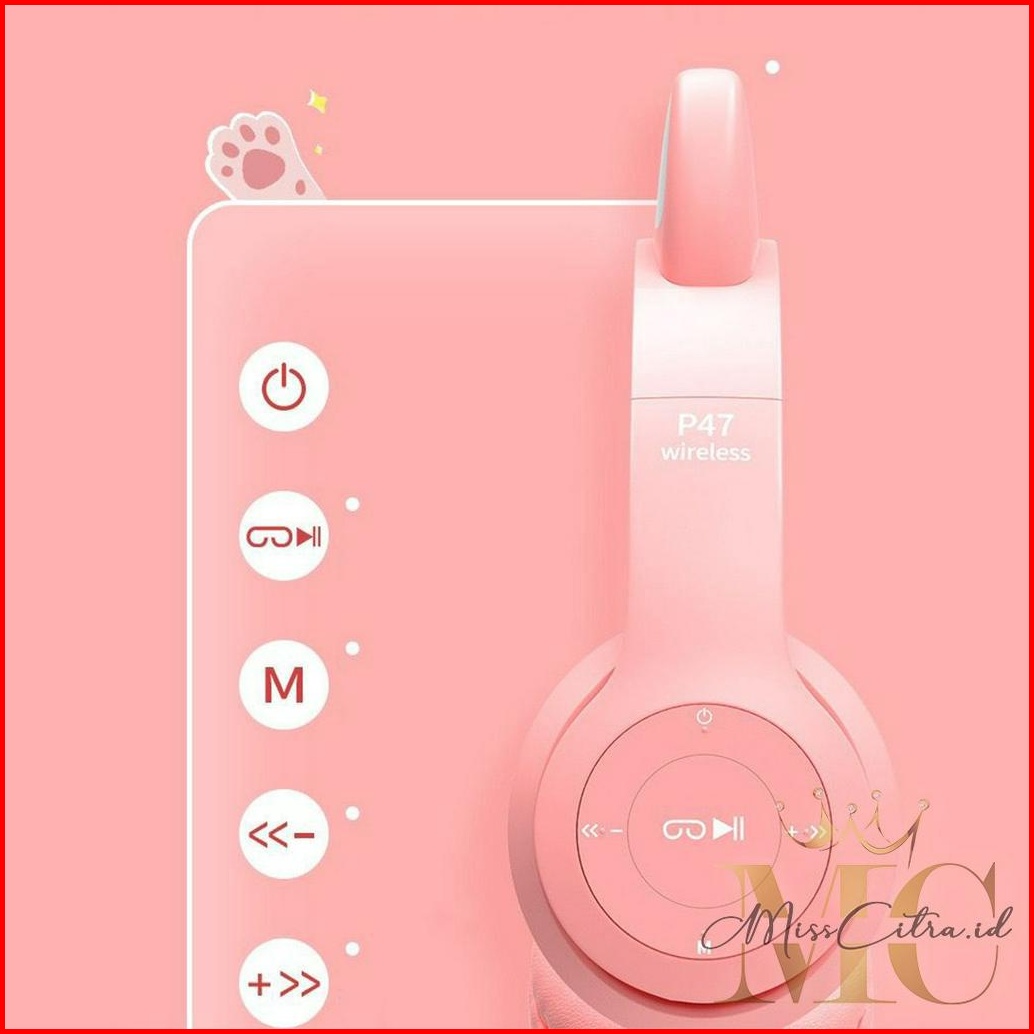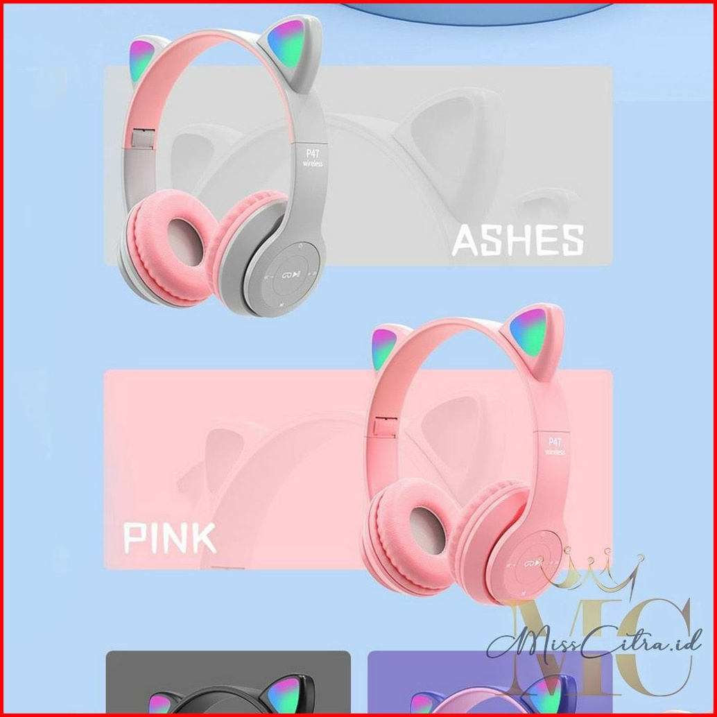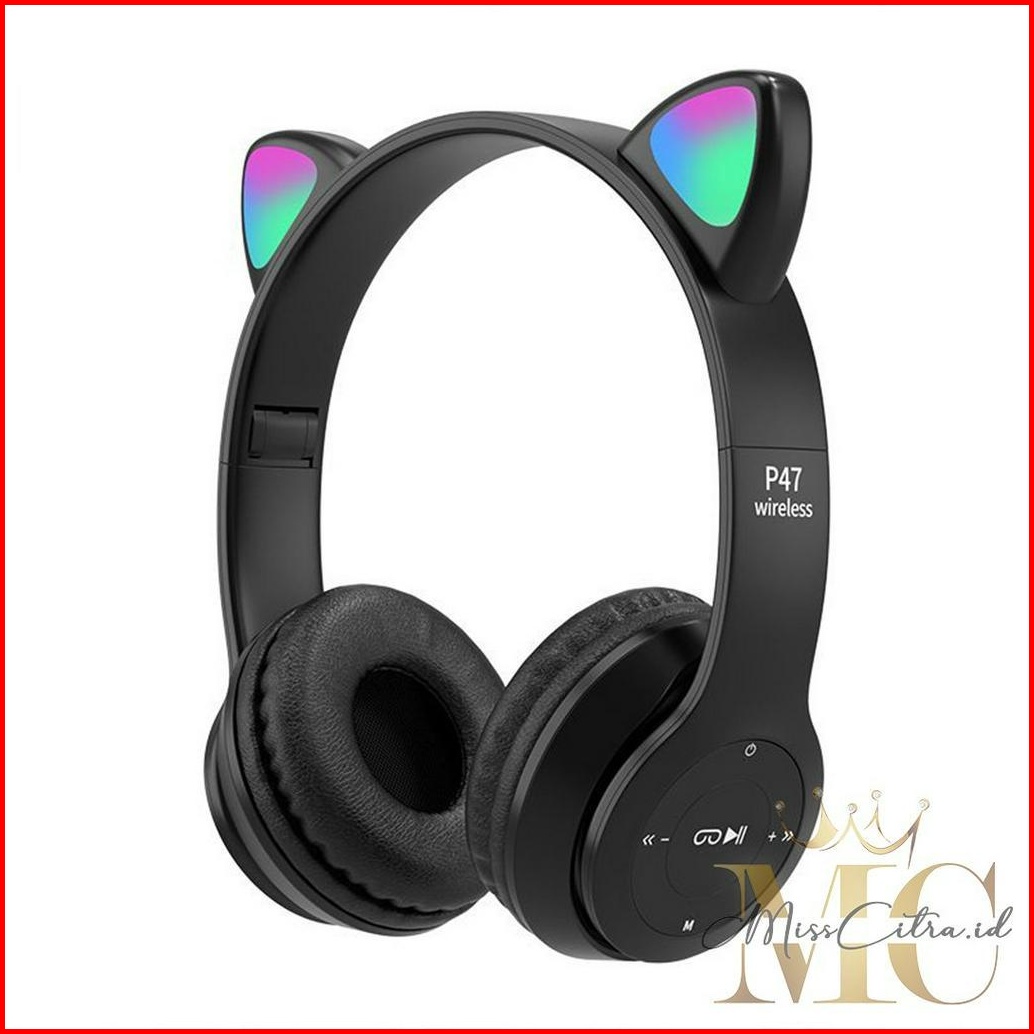 Cat Ears Headset Headphone Hf Bando Telinga Kucing P47m Led Bando Bluetooth Wireles Rgb Game Headset G-p47m Led Wireless