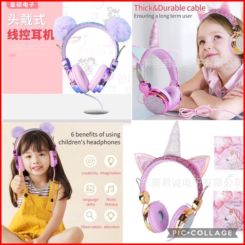 Headphone Kabel Unicorn Dengan Mikrofon Headset Anak Hadiah Unicorn Panda Termurah