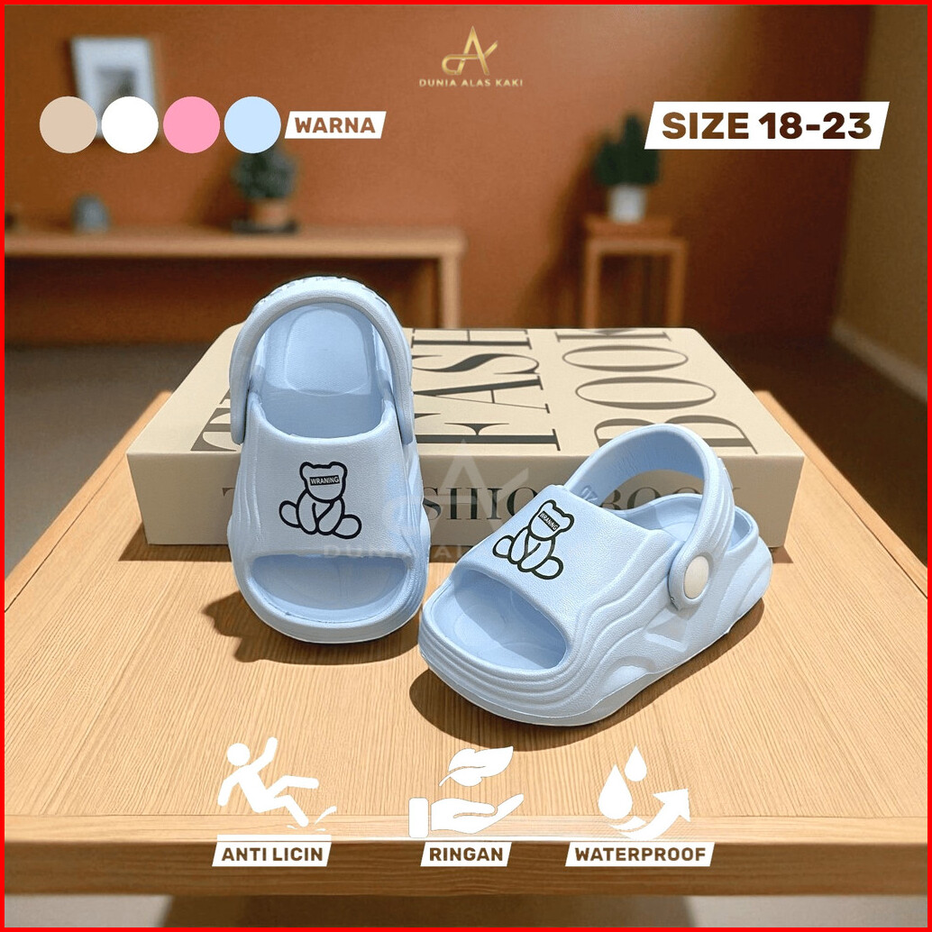 Dak Sandal Selop Bayi Anak Perempuan Cewek Usia 10 Bulan-2.5 Tahun Tali Belakang Karakter Bear Beruang