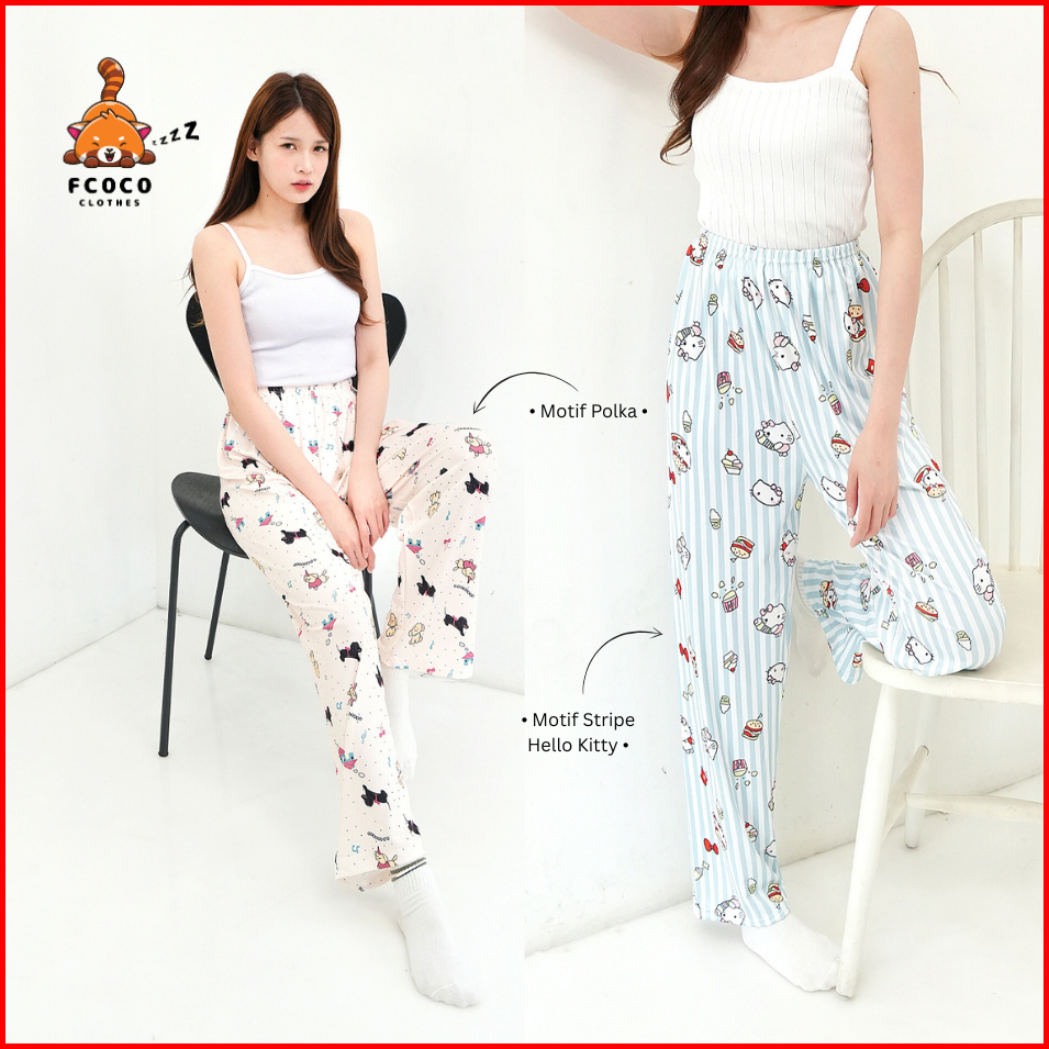 Fcoco - Celana Panjang Wanita Fc06 Celana Santai Panjang Motif Kartun Lucu Celana Rumah Celana Couple