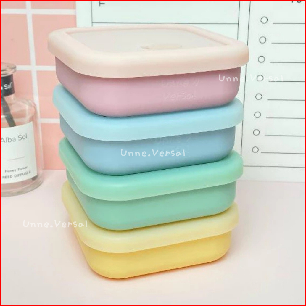 Unne.versal - Kotak Bekal Silicone Square Pastel Size 400 Ml Kotak Bekal Silikon Persegi Edisi Warna Pastelpremium Anti