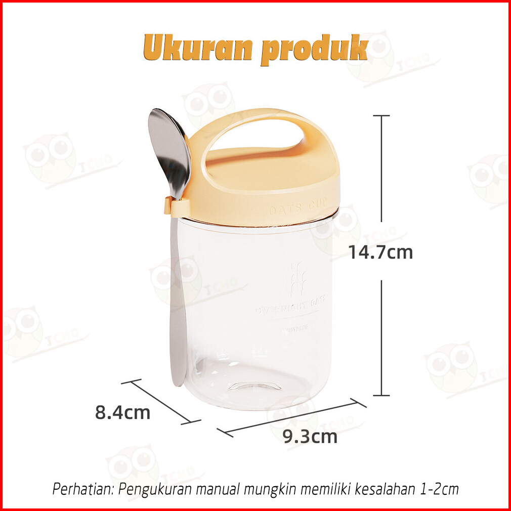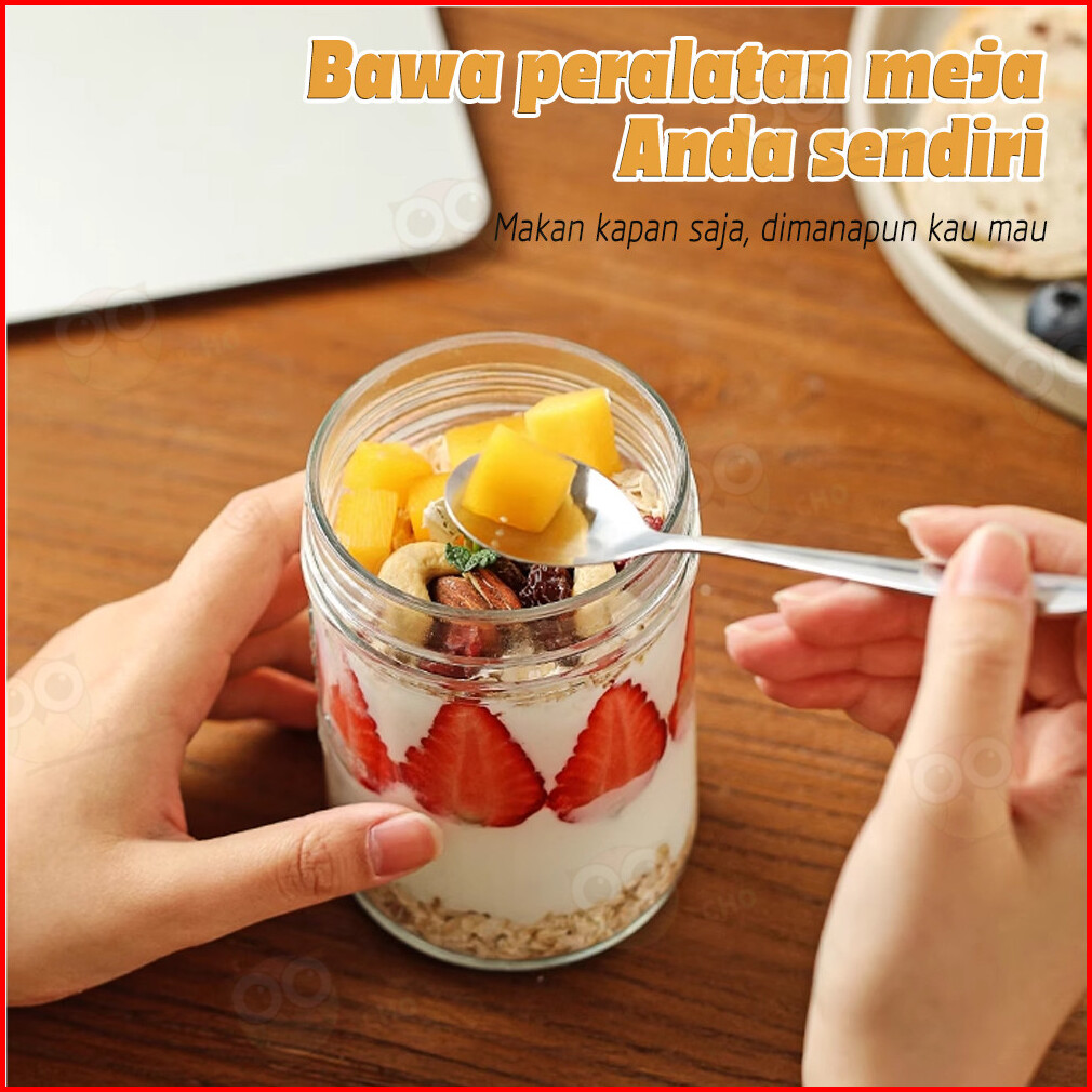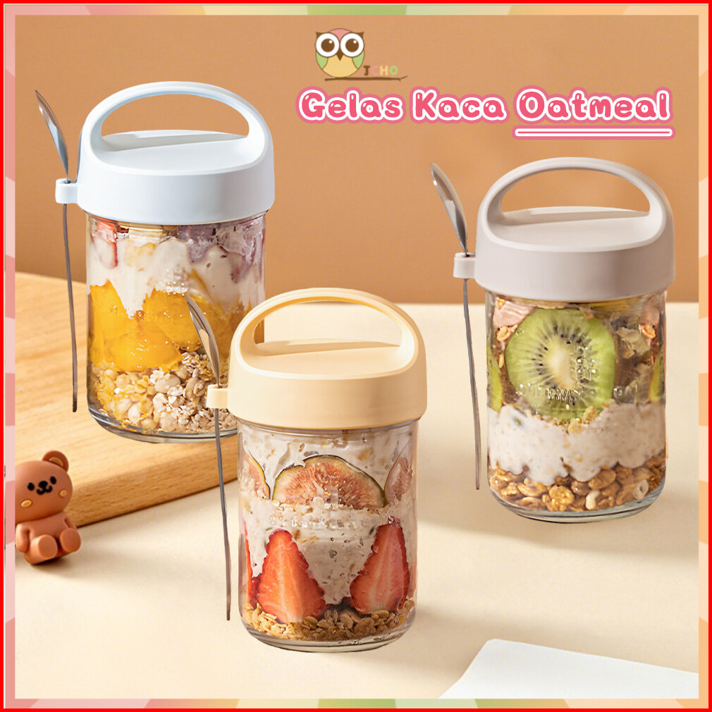 Jcho Tempat Oatmeal Portable Gelas Kaca Dengan Sendok Stainless 400ml