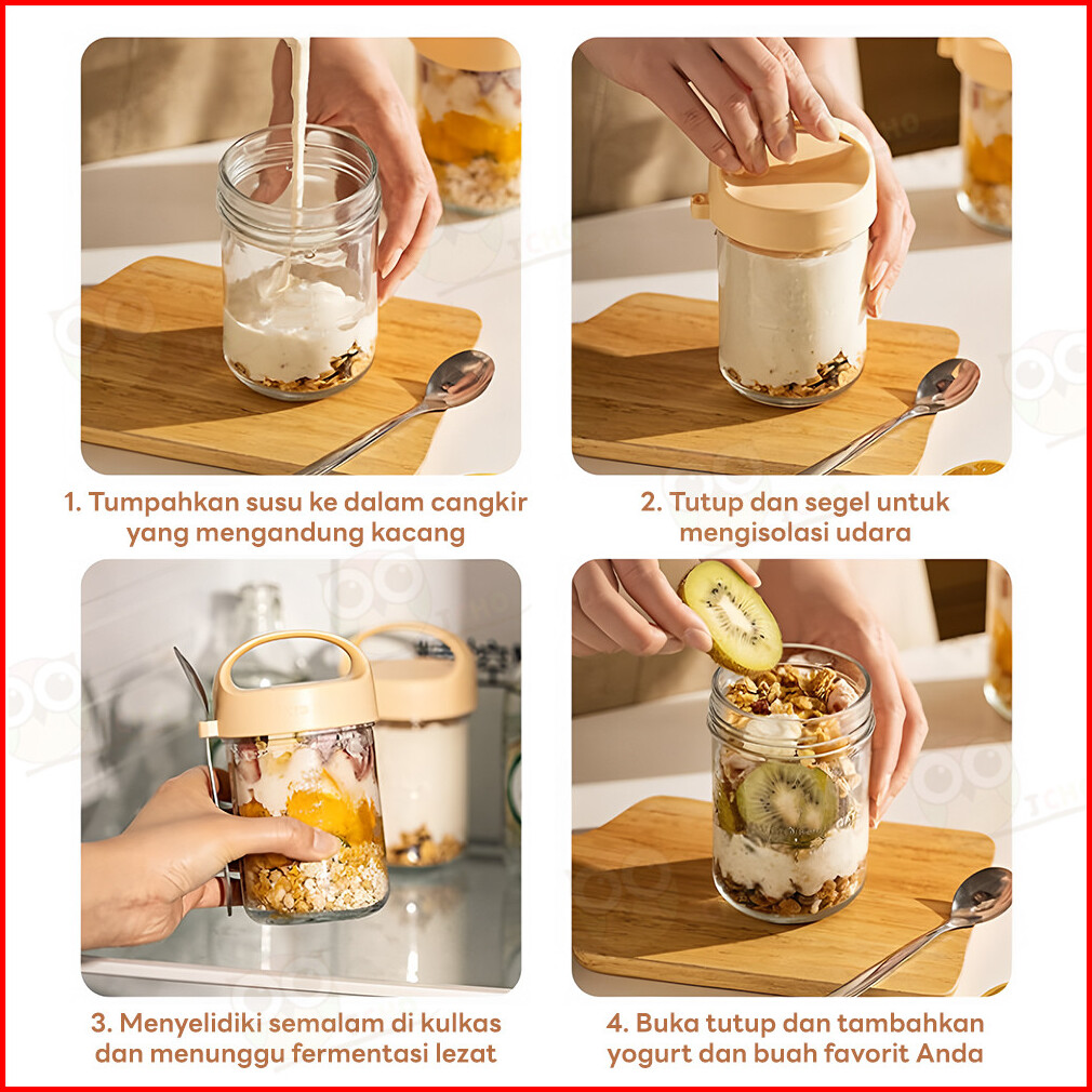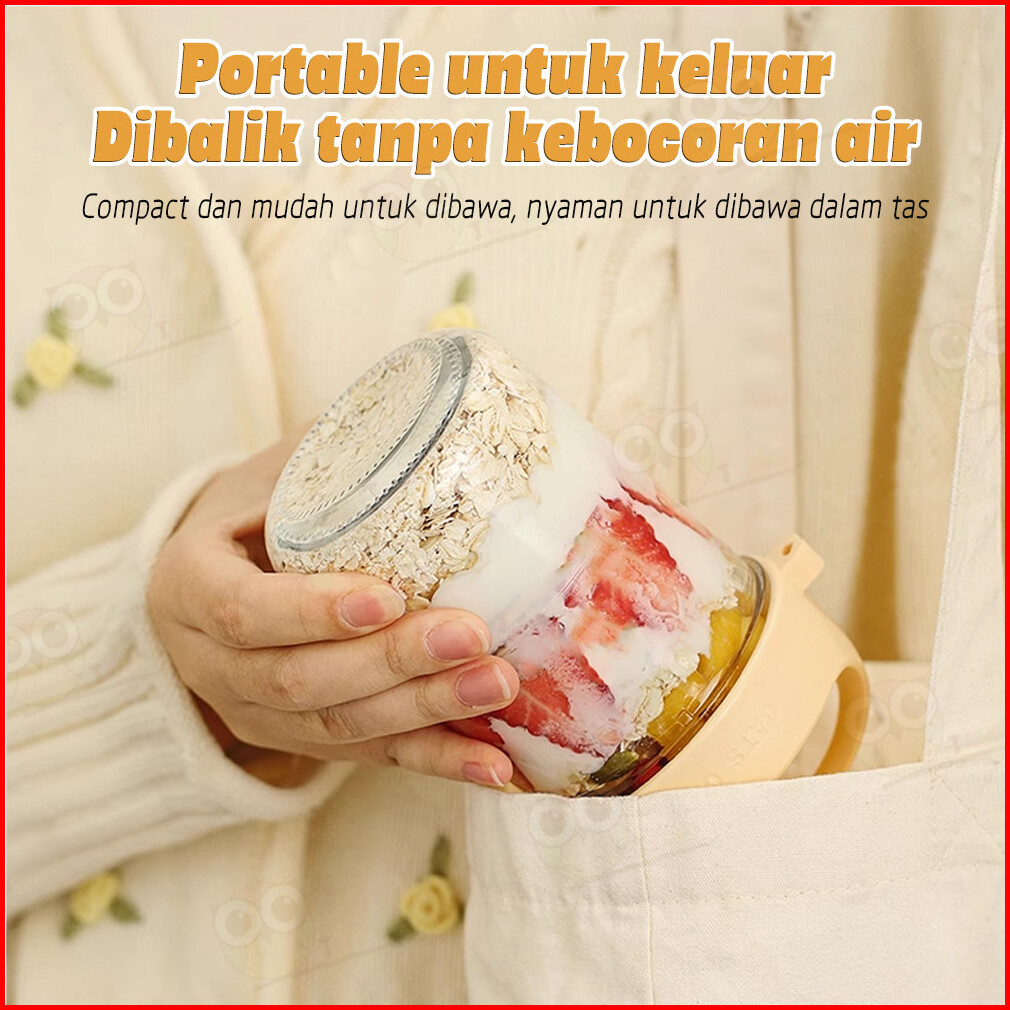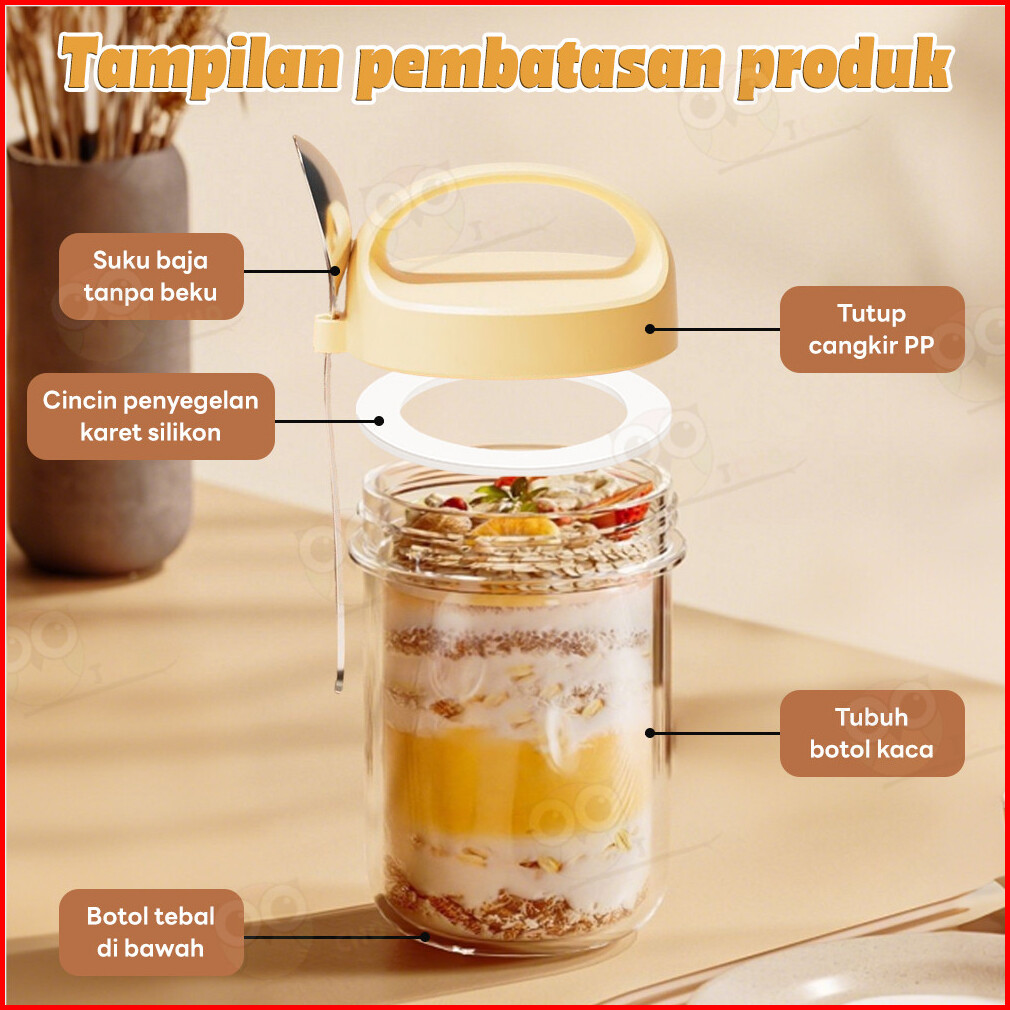 Jcho Tempat Oatmeal Portable Gelas Kaca Dengan Sendok Stainless 400ml