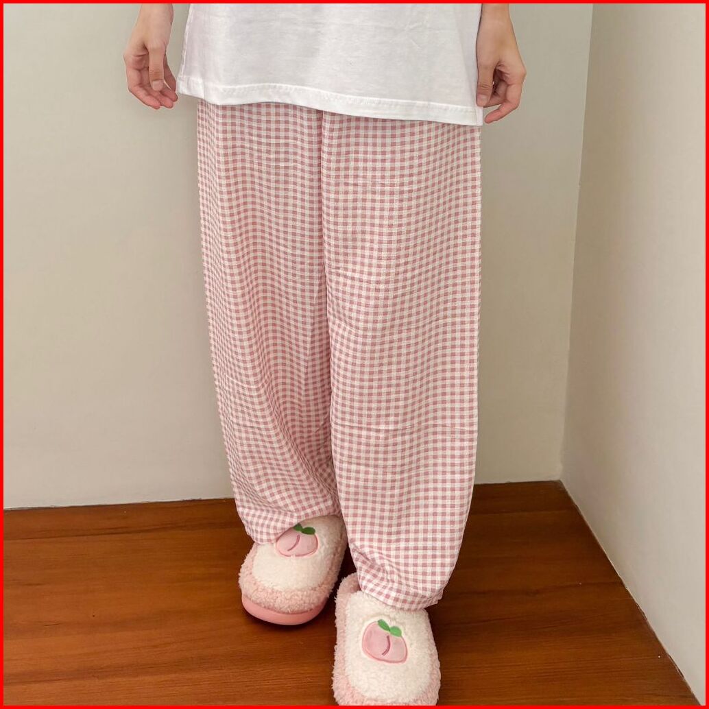 Chaewon Pants - Celana Tidur Celana Santai Gingham Kotak Korea
