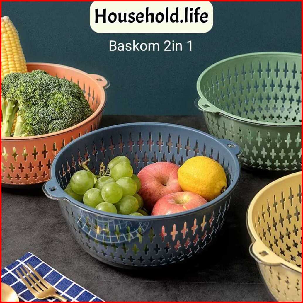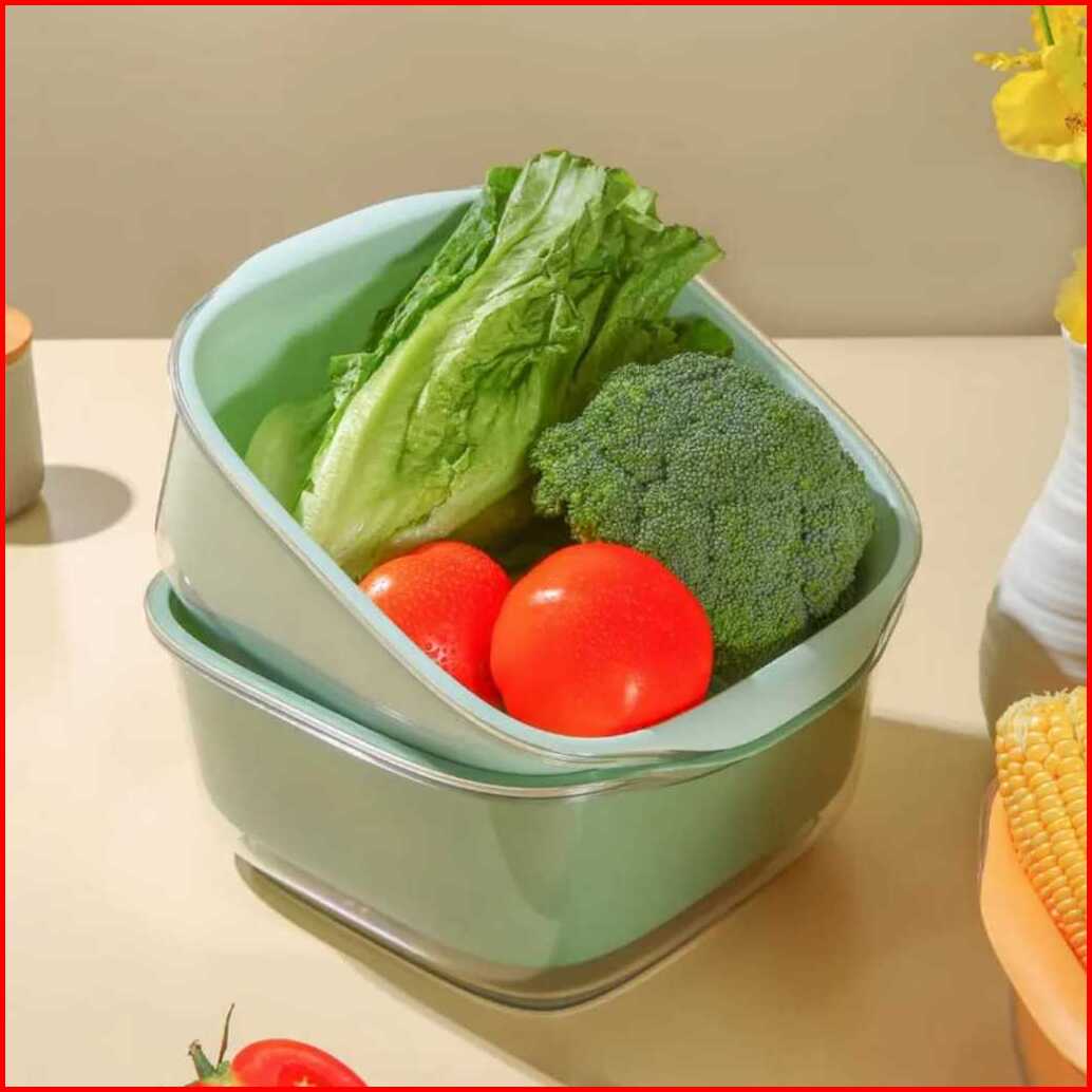 Baskom Saringan Drain Basin 2in1 Saringan Sayuran Buah Dengan Tutup Pengering Sayuran