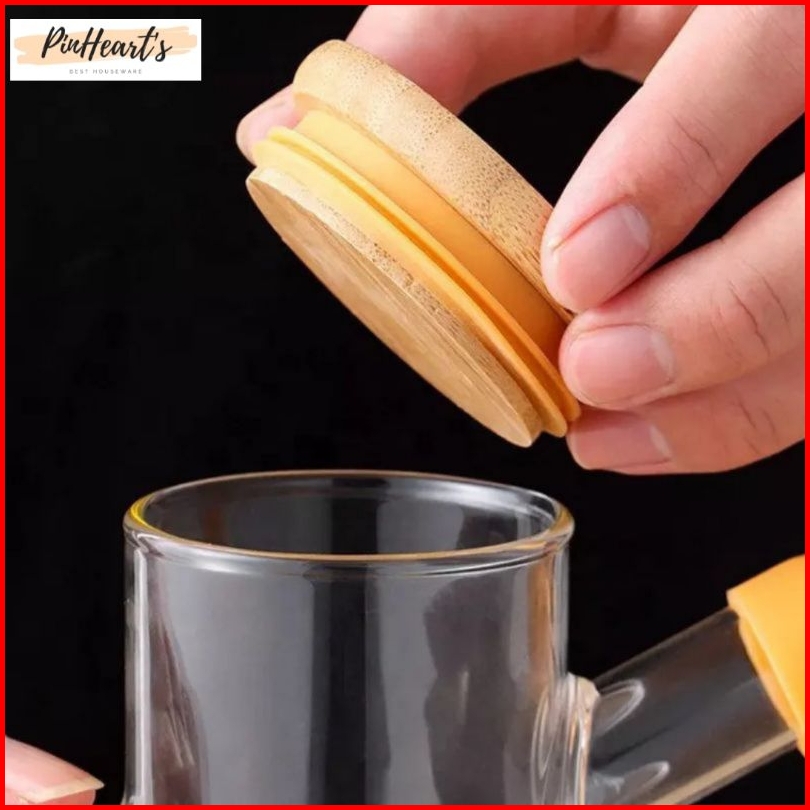 Oilpot Botol Kaca Minyak Borosilicate Tutup Bambu Tempat Penyimpanan Minyak Goreng Saus Kecap Tutup Bambu Ukuran 700ml 9