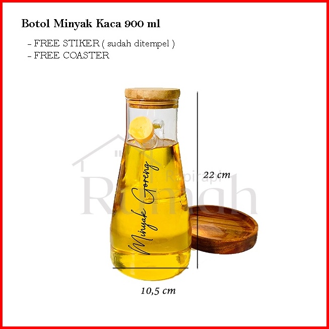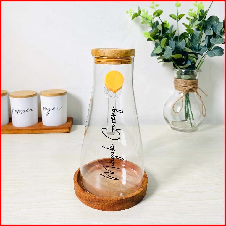 Botol Minyak Goreng Kaca Tutup Kayu 1000 Ml Dan 900 Ml Coaster