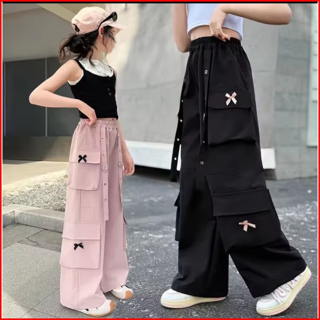 Celana Cargo Anak Wide Leg Saku Besar Katun Premium Super Nyaman Anti Gerah