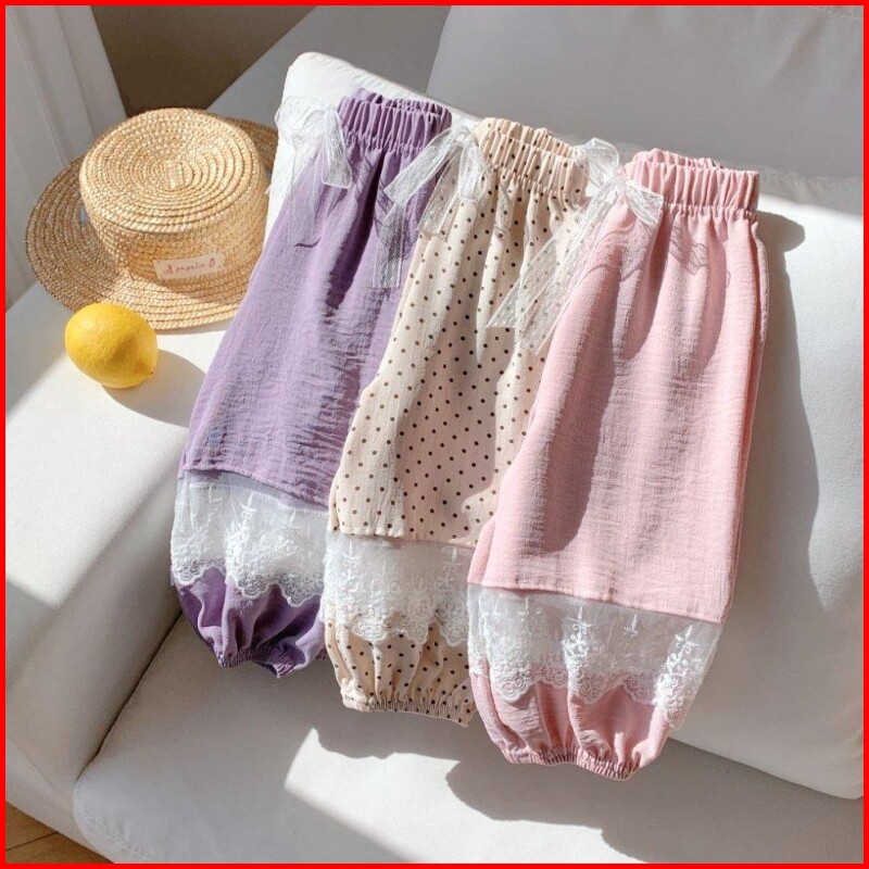 Enchanted Princessgirls Wide-leg Celana Celana Tahan Nyamuk Cocok Untuk 2-9 Tahun Dekorasi Renda Imut Pola Polka Dot Pol
