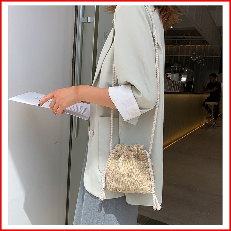 Bao067 Tas Anyaman Wanita Trendi Fashion Renda Jerami