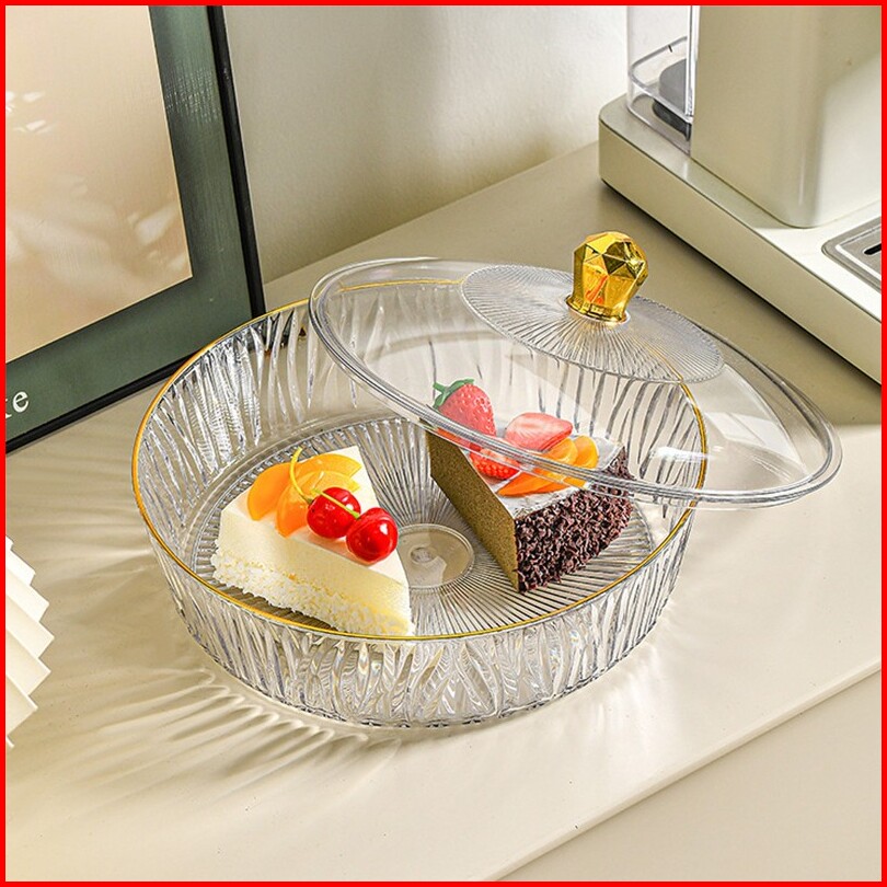 Tempat Buah Tempat Roti Aesthetic Nampan Dengan Tutup Transparan Multifungsi Tempat Roti Multifungsi Tahan Lama